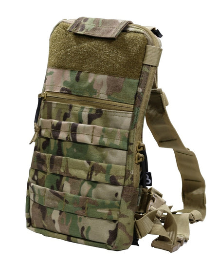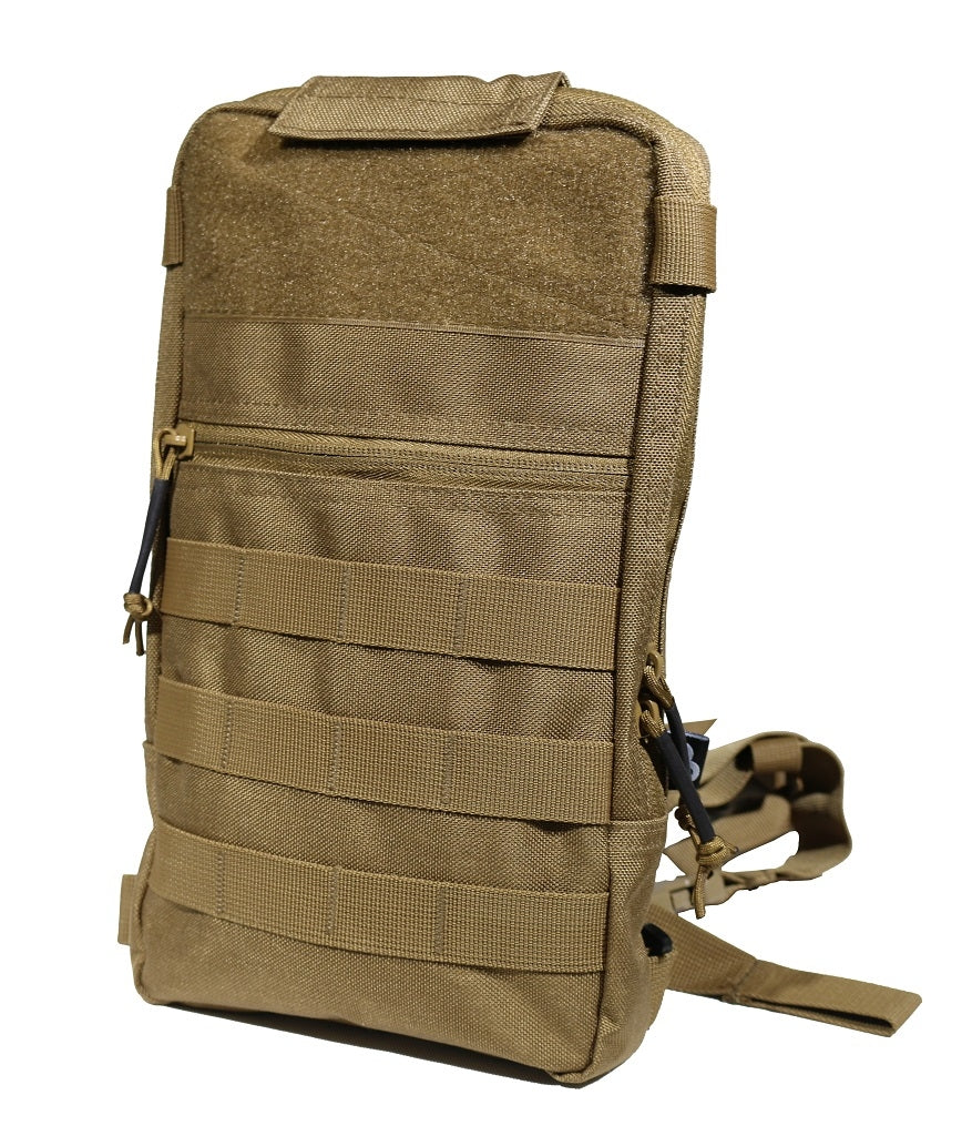 Kompakter Trinkrucksack mit 1,5 L Trinkblase, Front-MOLLE-System, abnehmbaren Schultergurten und vier Modularschlaufen.