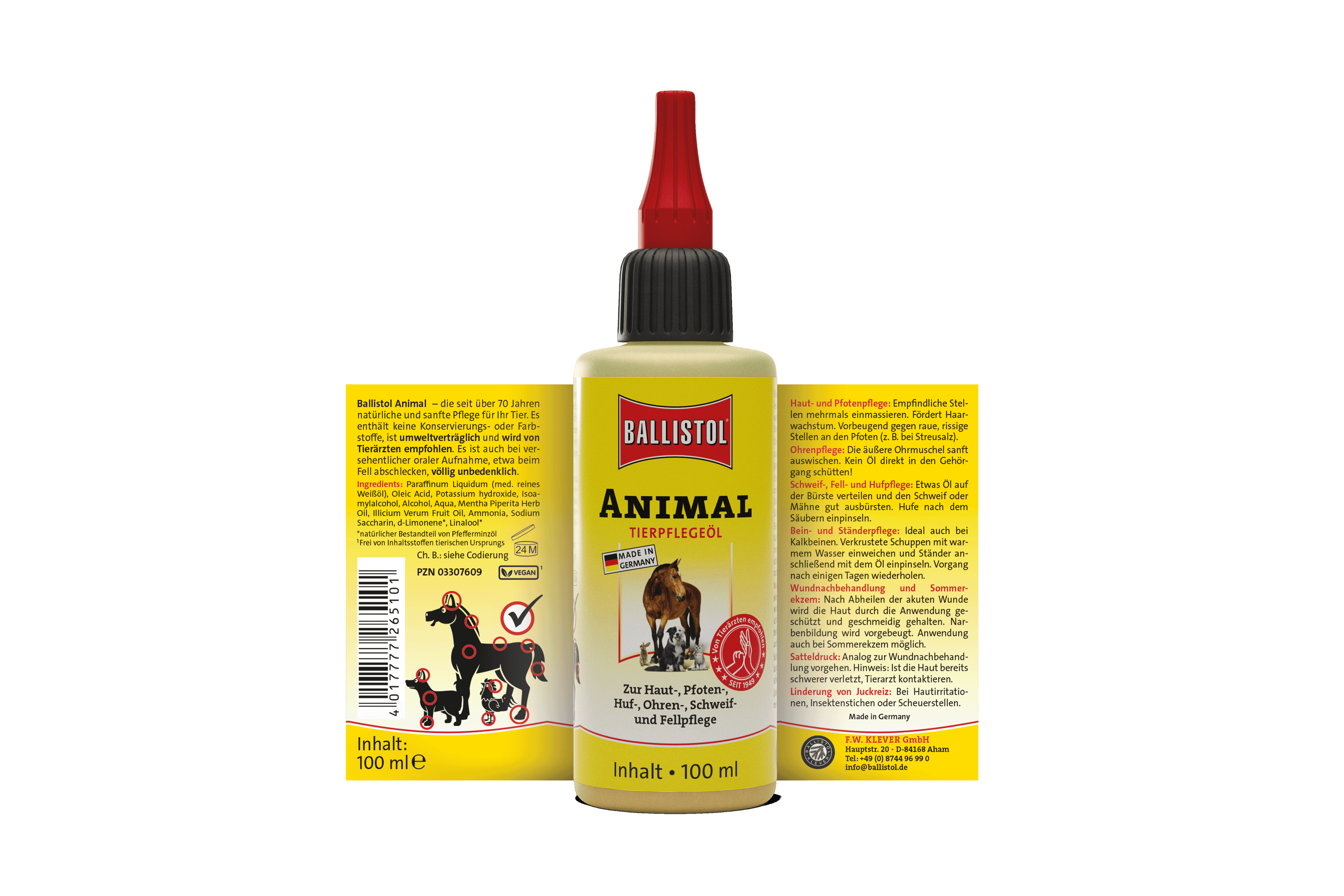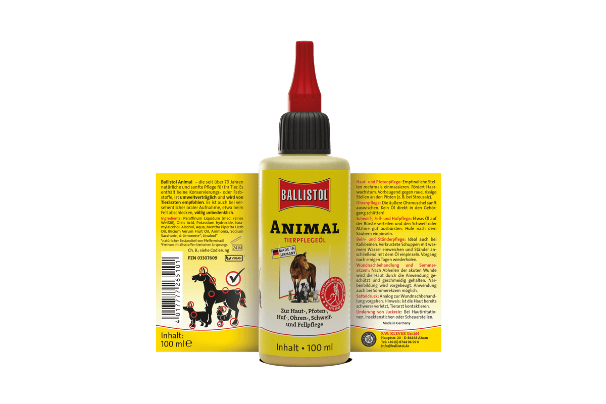 Sanfte Pflege für Haut, Fell, Hufe und Pfoten: Ballistol Animal ist das bewährte Allround-Pflegeöl für Haustiere und Nutztiere. Es wirkt hautberuhigend, pflegend und schützt zuverlässig vor Reizungen. Ideal zur Wundnachbehandlung, Fellpflege und Insektenabwehr – natürlich, hautfreundlich und ohne künstliche Zusatzstoffe.