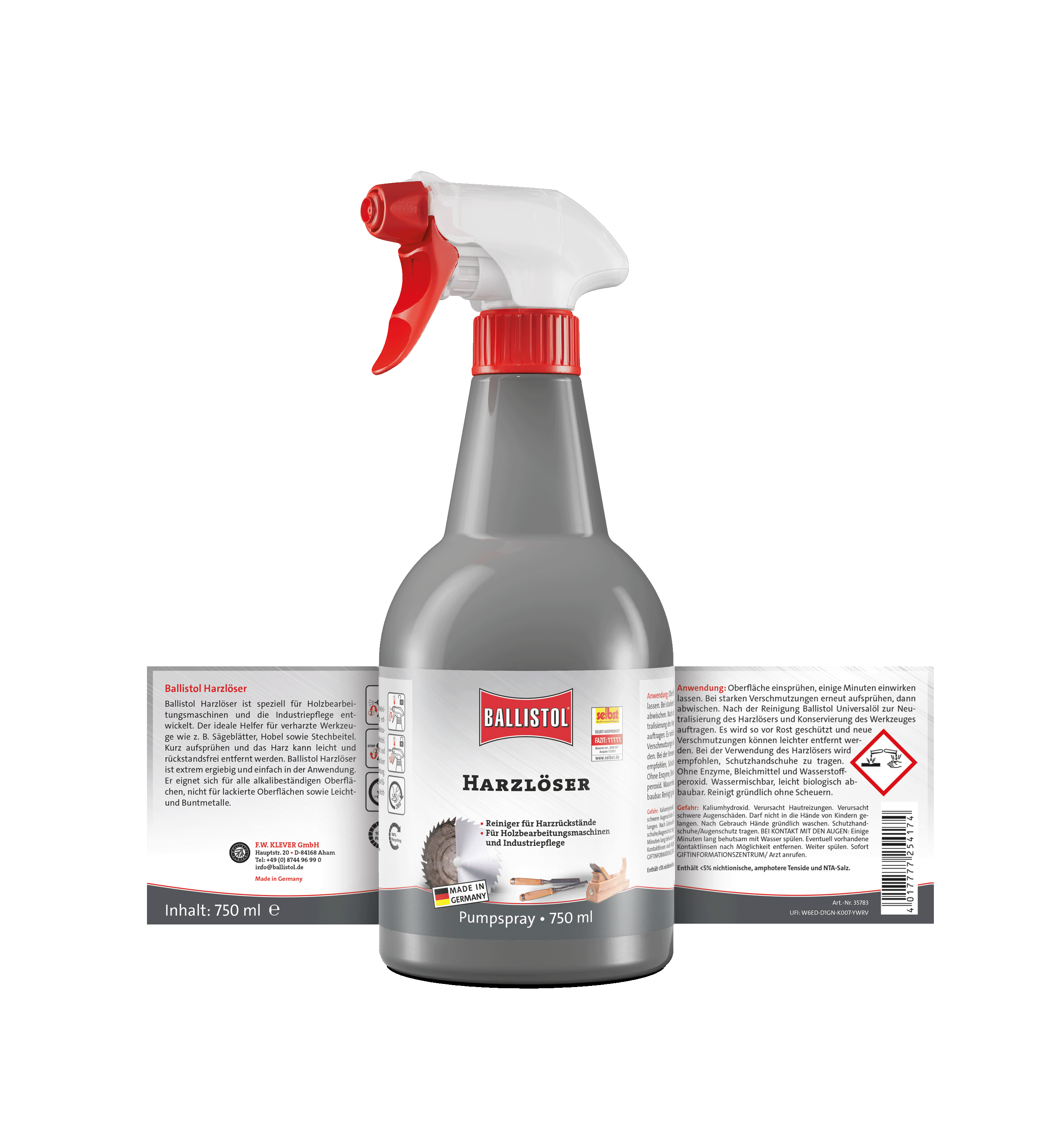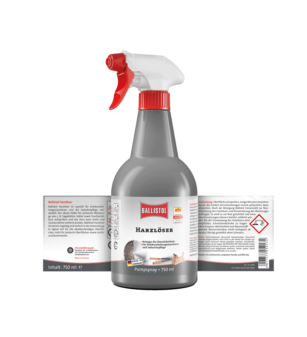 Das Ballistol Harzlöser Spray entfernt mühelos Baumharz, Ölharze, Klebstoffreste und andere hartnäckige Verschmutzungen von Metall, Kunststoff, Lack und Werkzeugen. Ideal für Motorsägen, Gartengeräte, Maschinen und Werkstätten. Wirkt schnell, rückstandsfrei und schont Materialien – für saubere, gepflegte Oberflächen im Handumdrehen.
