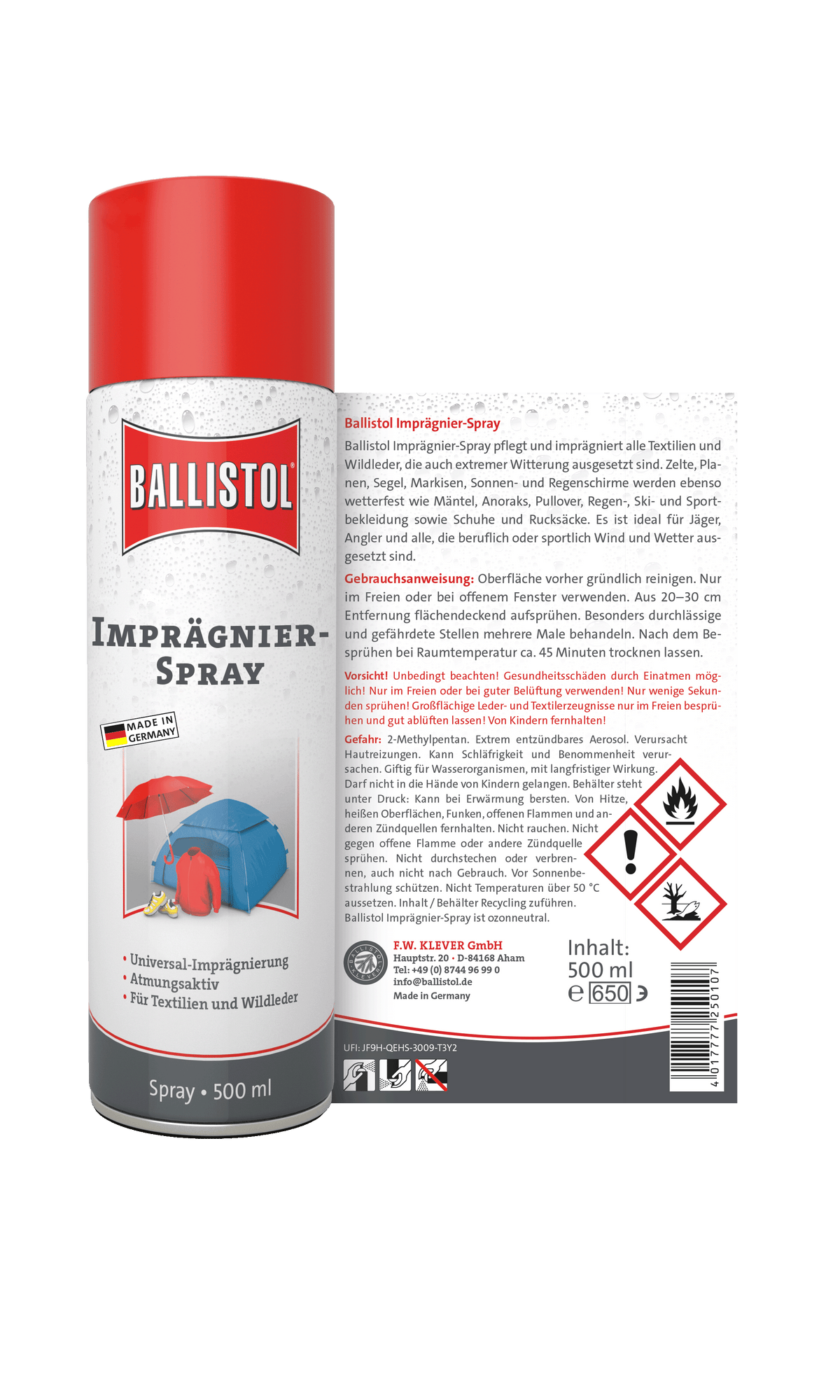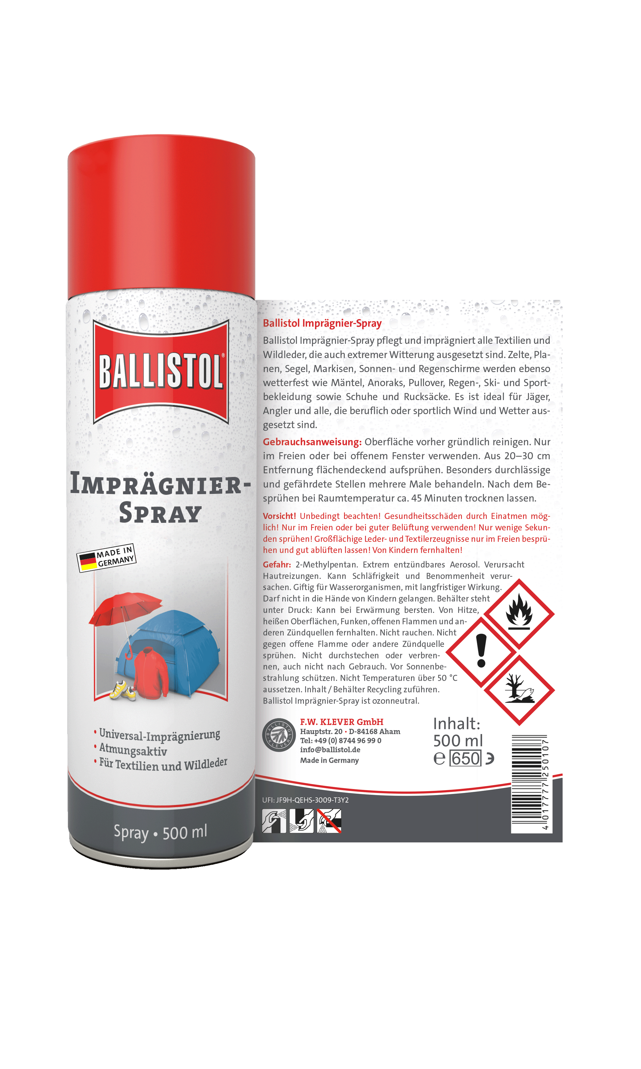 Zuverlässiger Nässeschutz für Textilien, Leder und synthetische Materialien: Das Ballistol Imprägnierspray bildet eine atmungsaktive, unsichtbare Schutzschicht gegen Wasser, Öl und Schmutz. Ideal für Kleidung, Schuhe, Zelte, Rucksäcke und Outdoor-Ausrüstung. Farb- und materialschonend – für langanhaltende Pflege und Schutz bei jedem Wetter.