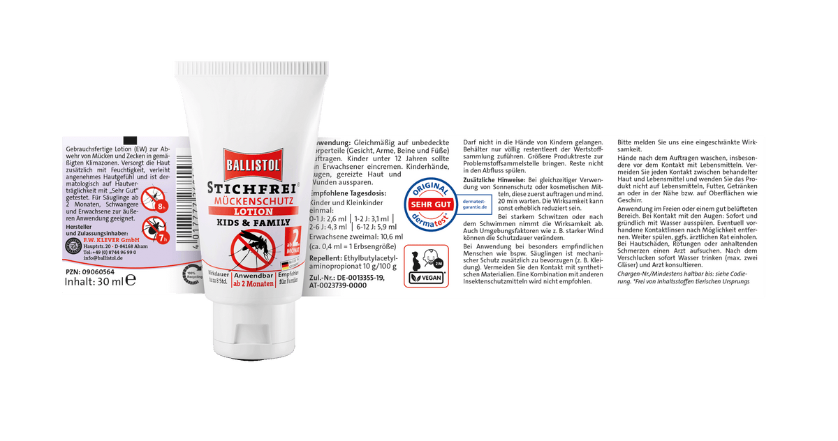 Ballistol Stichfrei Kids wurde speziell für die empfindliche Haut von Kindern entwickelt und schützt zuverlässig vor Mücken, Zecken und anderen stechenden Insekten – bis zu 8 Stunden lang. Die besonders milde Formel ist frei von Alkohol, Duftstoffen und Konservierungsmitteln, dermatologisch getestet und pflegt die Haut mit Aloe Vera und Vitamin E. Ideal für Ausflüge, Spielplatz, Urlaub oder Garten – ganz ohne Kompromisse bei Sicherheit und Hautverträglichkeit.