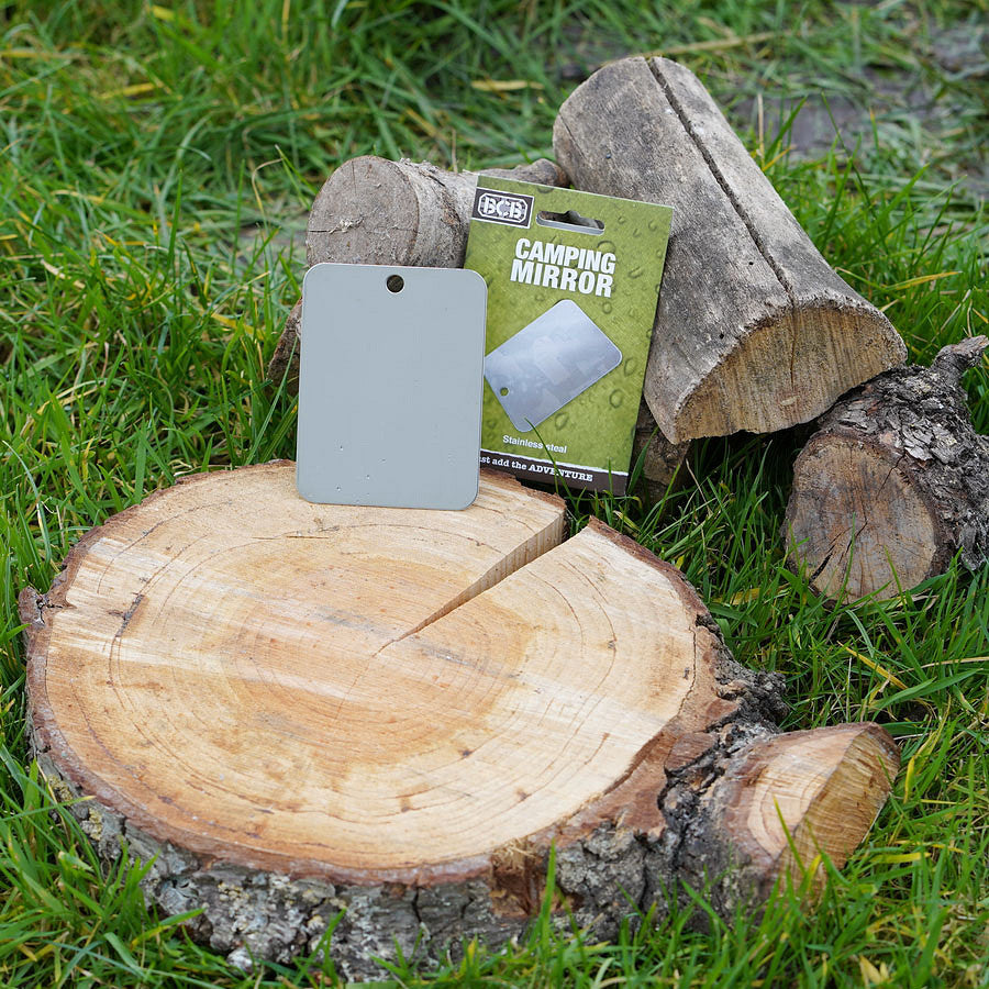 Leichter, bruchsicherer Spiegel aus rostfreiem Edelstahl – ideal für Outdoor, Survival und persönliche Hygiene unterwegs. Mit abgerundeten Ecken und praktischer Handschlaufe. Auch als Signalmittel in Notfällen nutzbar.