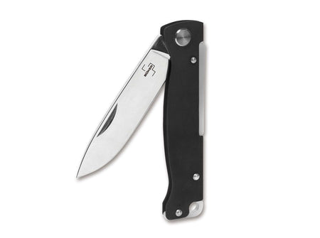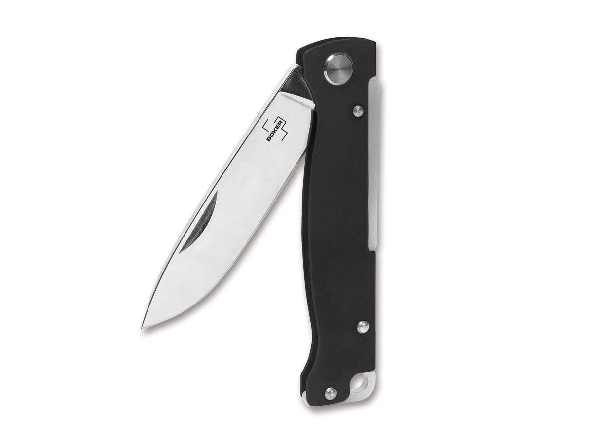 Das schnörkellose Böker Plus Atlas ist ein zuverlässiges Slipjoint-Taschenmesser mit einem Griffkörper aus geschwärztem Edelstahl. Die minimalistische Konstruktion ist überaus robust und macht das handliche Messer zum perfekten Begleiter in allen Lebenslagen. Die satinierte Droppoint-Klinge aus 12C27 wird per Nagelhau geöffnet und bewältigt alle anfallenden Schneidaufgaben des Alltags problemlos. Mit Fangriemenöse und Clip (Tip-up/r).
