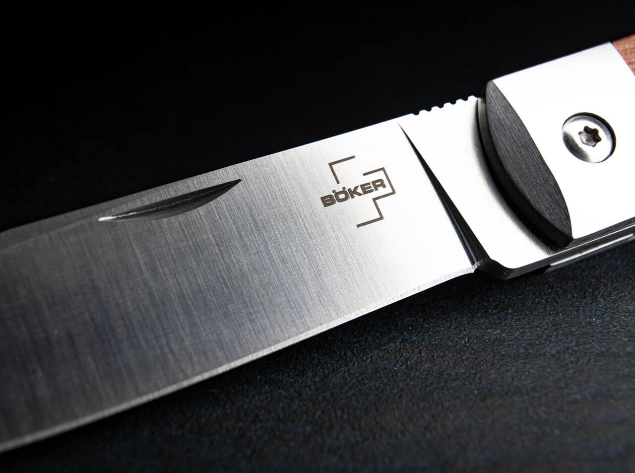 Eleganz trifft auf Leistung: Das Böker Plus Bonfire mit edlem Bubinga-Holzgriff kombiniert klassische Linienführung mit moderner Technik. Die satinierte Droppoint-Klinge aus D2-Stahl bietet hervorragende Schnitthaltigkeit – ideal für stilbewusste Messerfreunde im Alltag.