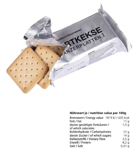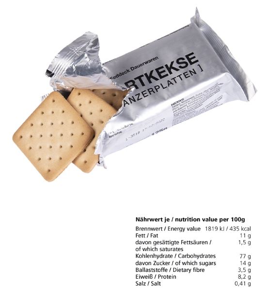 - Rezeptur und Verpackung machen Kekse sehr lange haltbar und unempfindlich gegen Nässe, Hitze, Kälte und Nagerfraß