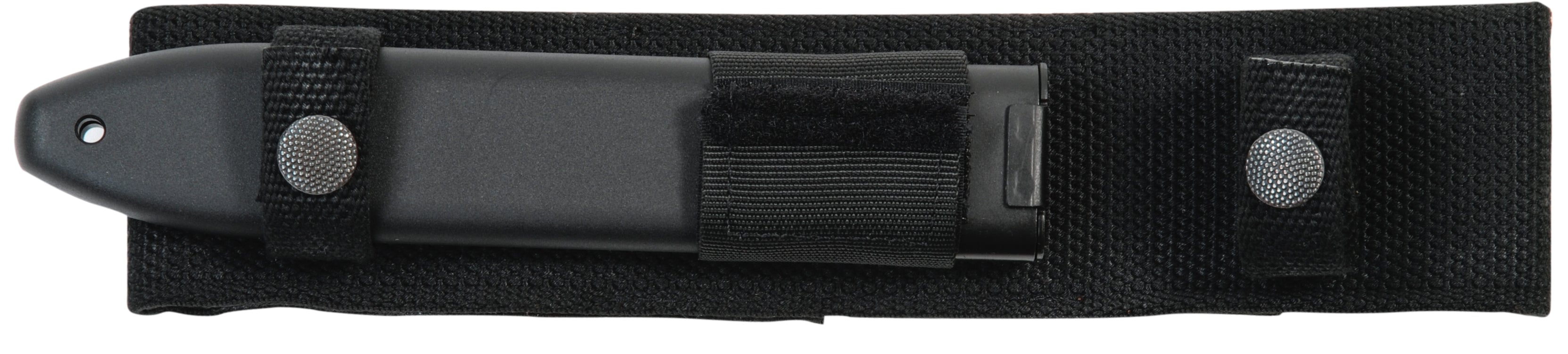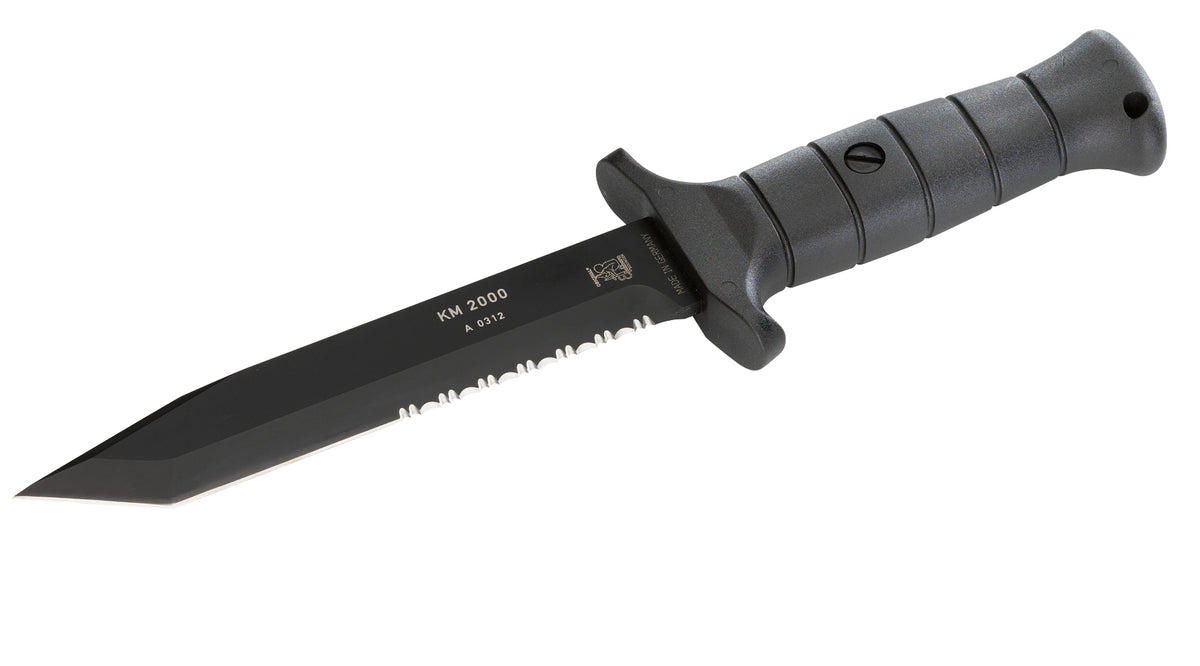 Die mittels Kalgard-Beschichtung geschwärzte Klinge läuft als Massiv-Erl durch den gesamten Griff und lässt sich problemlos zum Zerschlagen von Fensterglas nutzen.