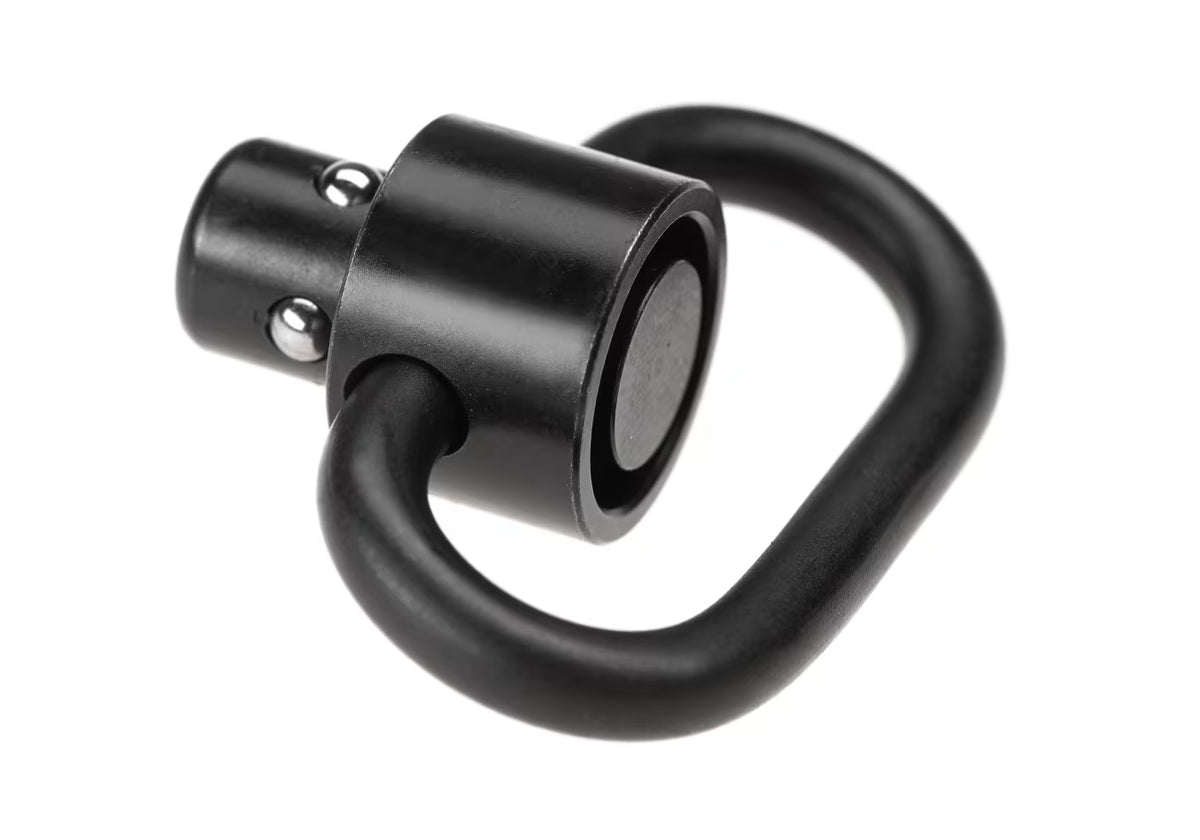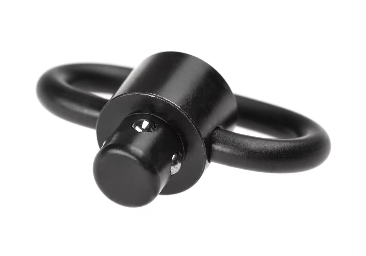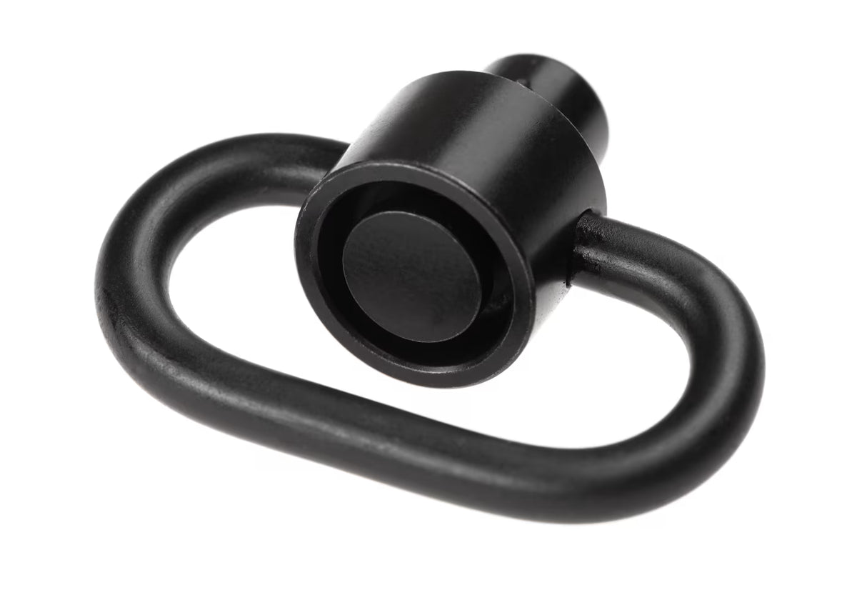 Taktischer QD-Sling-Swivel für breite Gewehrriemen (1.25″ / 31,75 mm). Der robuste Push-Button-Mechanismus ermöglicht schnelles Anbringen und Abnehmen – auch mit Handschuhen. Hergestellt aus rostfreiem Edelstahl mit abriebfester, schwarzer Oxidbeschichtung für hohe Langlebigkeit und reflexionsarmes Arbeiten. Der versenkte Druckknopf schützt vor unbeabsichtigtem Lösen. Kompatibel mit allen gängigen QD-Schnittstellen.