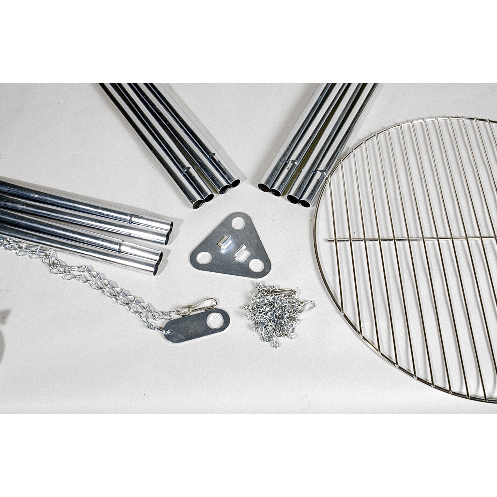 Höhenverstellbarer Grillrost: Der verchromte Grillrost lässt sich per Kette individuell in der Höhe anpassen – für optimale Hitze- und Garsteuerung.