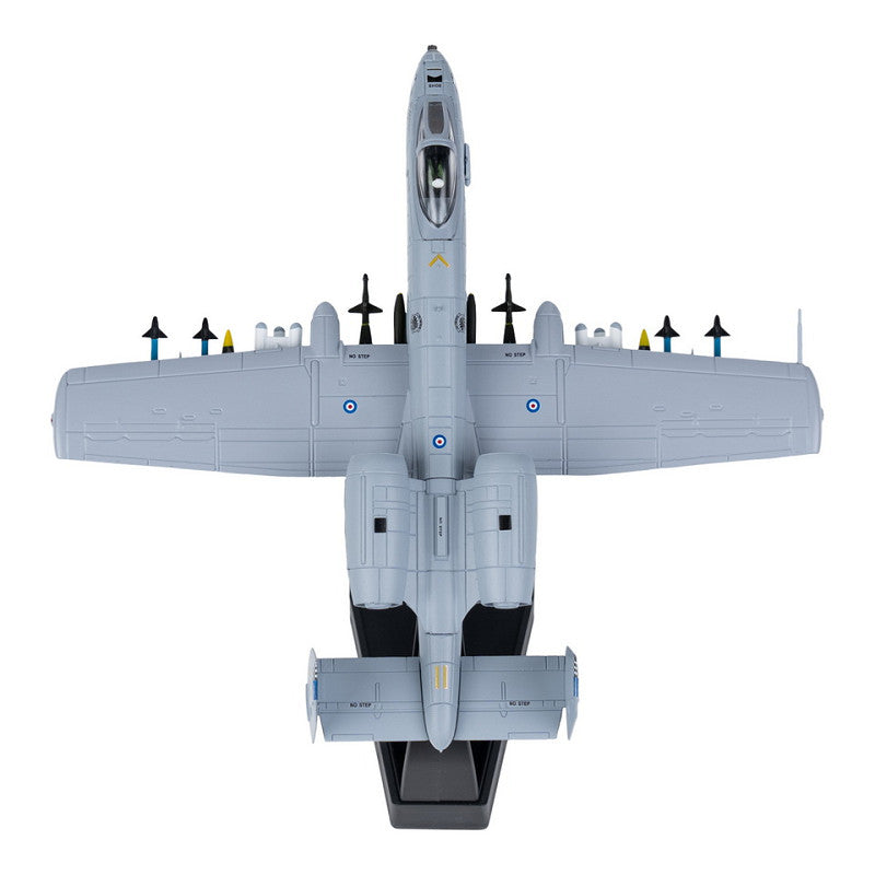 Entdecken Sie dieses detaillierte Die-Cast-Modell der A10 Thunderbolt. Das robuste Angriffs- und Bodenunterstützungsflugzeug, bekannt für seine Präzision und Langlebigkeit, steht auf einem Sockel. Perfekt für Sammler und Luftfahrtbegeisterte!