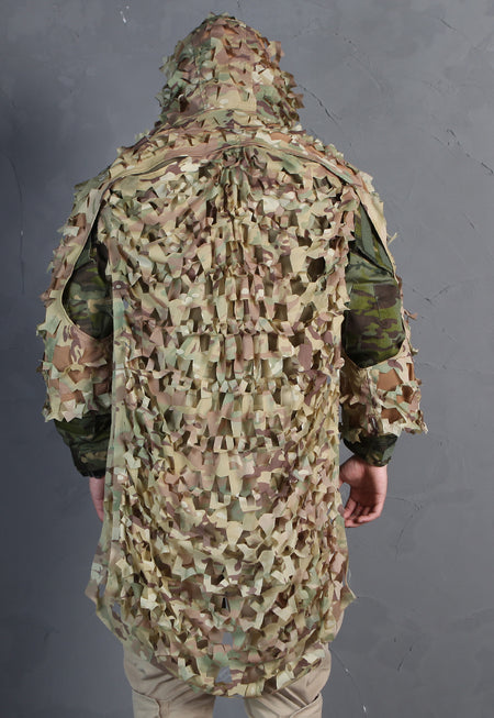 Dank des leichten, atmungsaktiven Materials bietet das Cape optimalen Tragekomfort bei gleichzeitig effektiver Tarnwirkung in unterschiedlichen Umgebungen. Das Multicam-Muster sorgt für gute Konturauflösung in Mischgelände wie Wald, Wiese oder urbanen Arealen. Mit elastischen Befestigungsschlaufen und Druckknöpfen lässt sich das Cape anpassen und sicher fixieren.