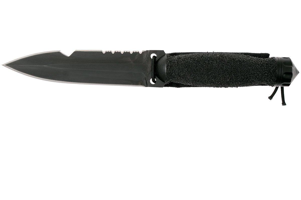 Das Extrema Ratio® Ultramarine ist ein taktisches Tauchermesser mit einer 6,3 mm starken, rostfreien Klinge und einem chemischen Poliervorgang gegen Korrosion. Die scharfe Klinge und einseitiger Wellenschliff machen es ideal zum Schneiden von Netzen, Seilen und Stoffen. Der rutschhemmende Griff aus Nylon-Glasfaser bietet sicheren Griff und der Schlagdorn am Griffende ermöglicht das Zerlegen des Messers.