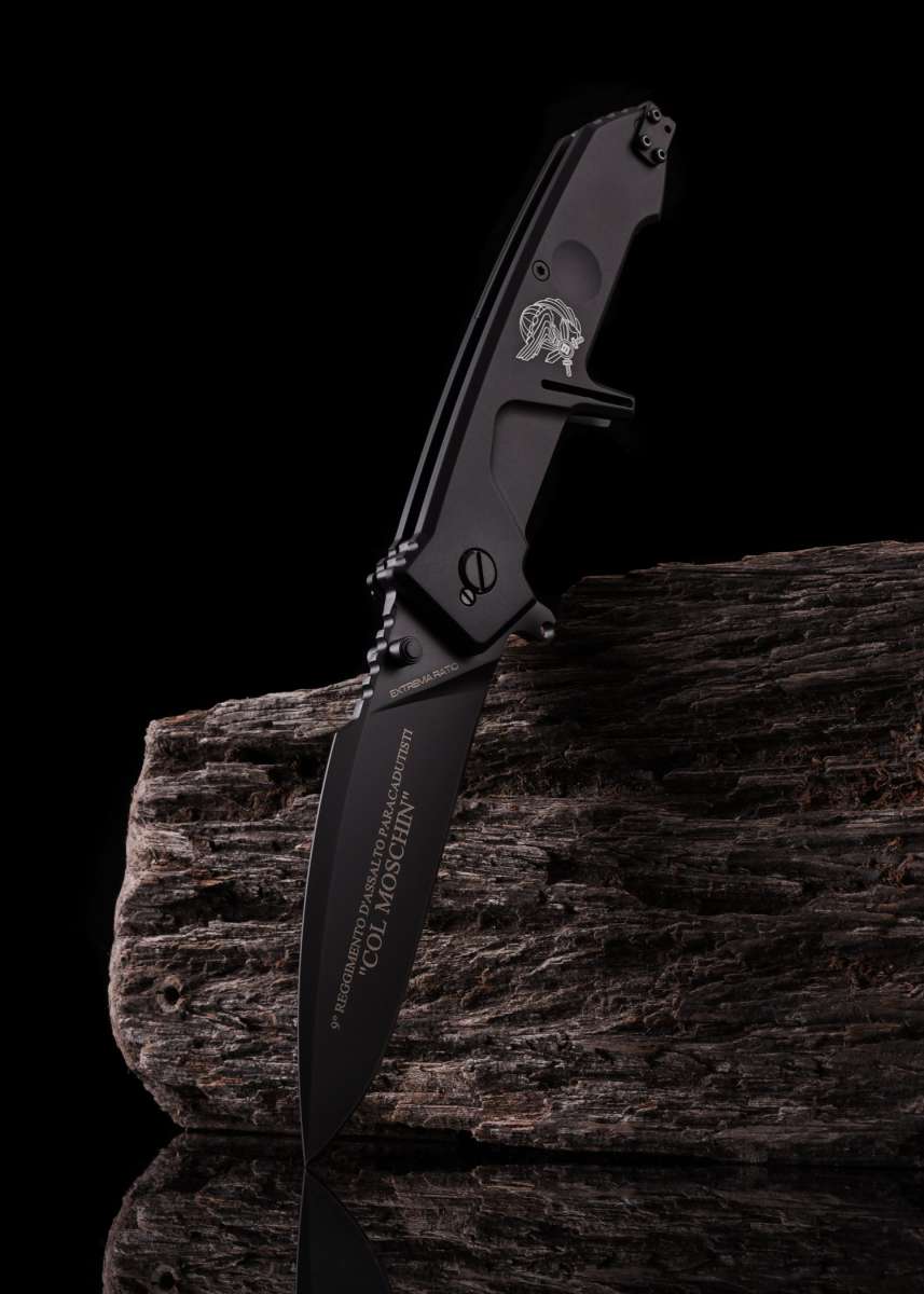 Das MF 2 Col Moschin Ordinanza von Extrema Ratio ist mit dem Logo des 9. Regiment Incursori Col Moschin ausgestattet und wird in einem ABS-Koffer geliefert.