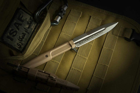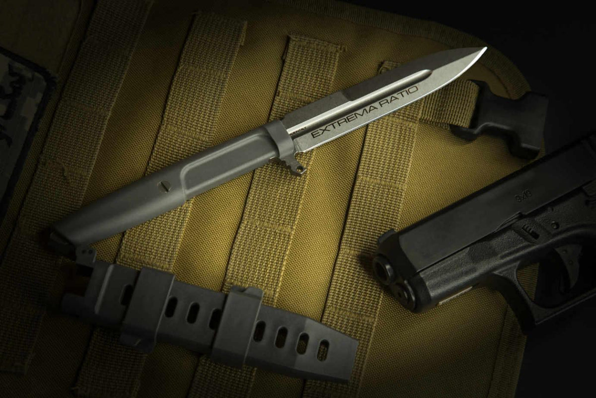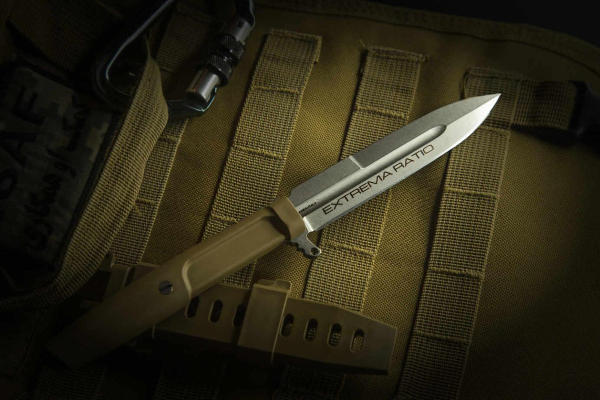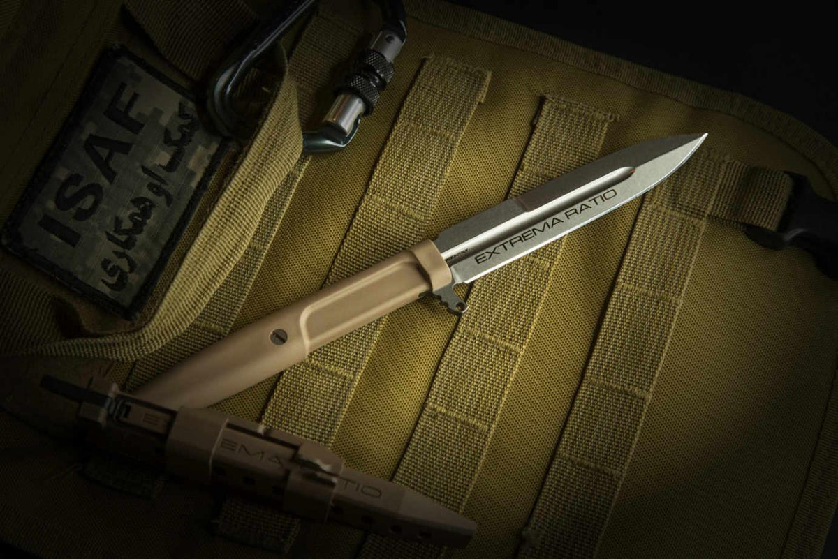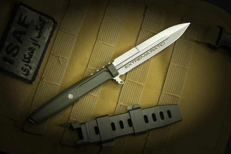 Taktisches Mehrzweckmesser, sehr leicht und einfach zu handhaben. Dieses einschneidige Stilett mit Einzelschutz wird mit einer speziellen Aspis-Nylonscheide geliefert, die speziell von Extrema Ratio entwickelt wurde, um ein schnelles Lösen der Klinge und ihre Befestigung im M.O.L.L.E.-System zu ermöglichen, dank zweier Multipositionsclips. Erhältlich in den Farben Black, Desert, HCS, Ranger Green und Wolf Grey.