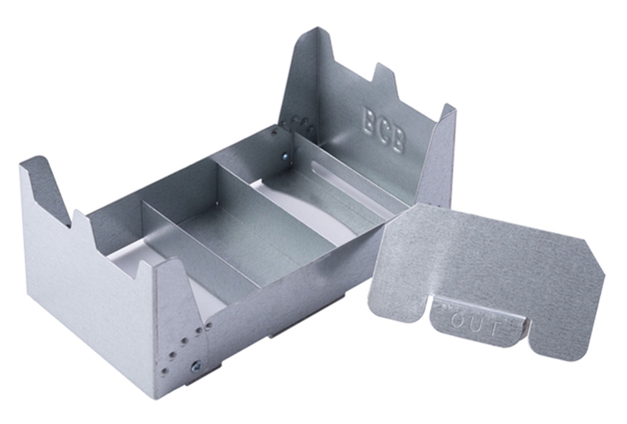 - kompakt, leicht, wiederverwendbar- mit abnehmbarem Windschutz- Seitenwände klappbar- verwendbar mit Trockenbrennstoff oder Brenngel