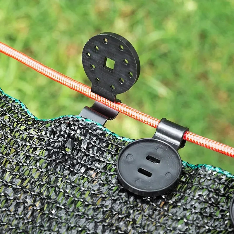 Mit diesen Befestigungsclips im 20er-Set lassen sich Windschutz, Sichtschutz, Gartennetze oder Planen schnell und sicher montieren. Die Clips werden einfach ins Netz eingeklickt und durch den beidseitigen Verriegelungsmechanismus fest verschlossen. Das integrierte Ösenloch ermöglicht das Aufhängen an Seilen, während das mittige Loch ideal zur Befestigung mit Heringen oder Bodenankern ist. Hergestellt aus robustem, wetterbeständigem Polyethylen (PE), sind die Clips langlebig, wiederverwendbar und vielseitig einsetzbar – perfekt für Garten, Camping oder Bauprojekte.