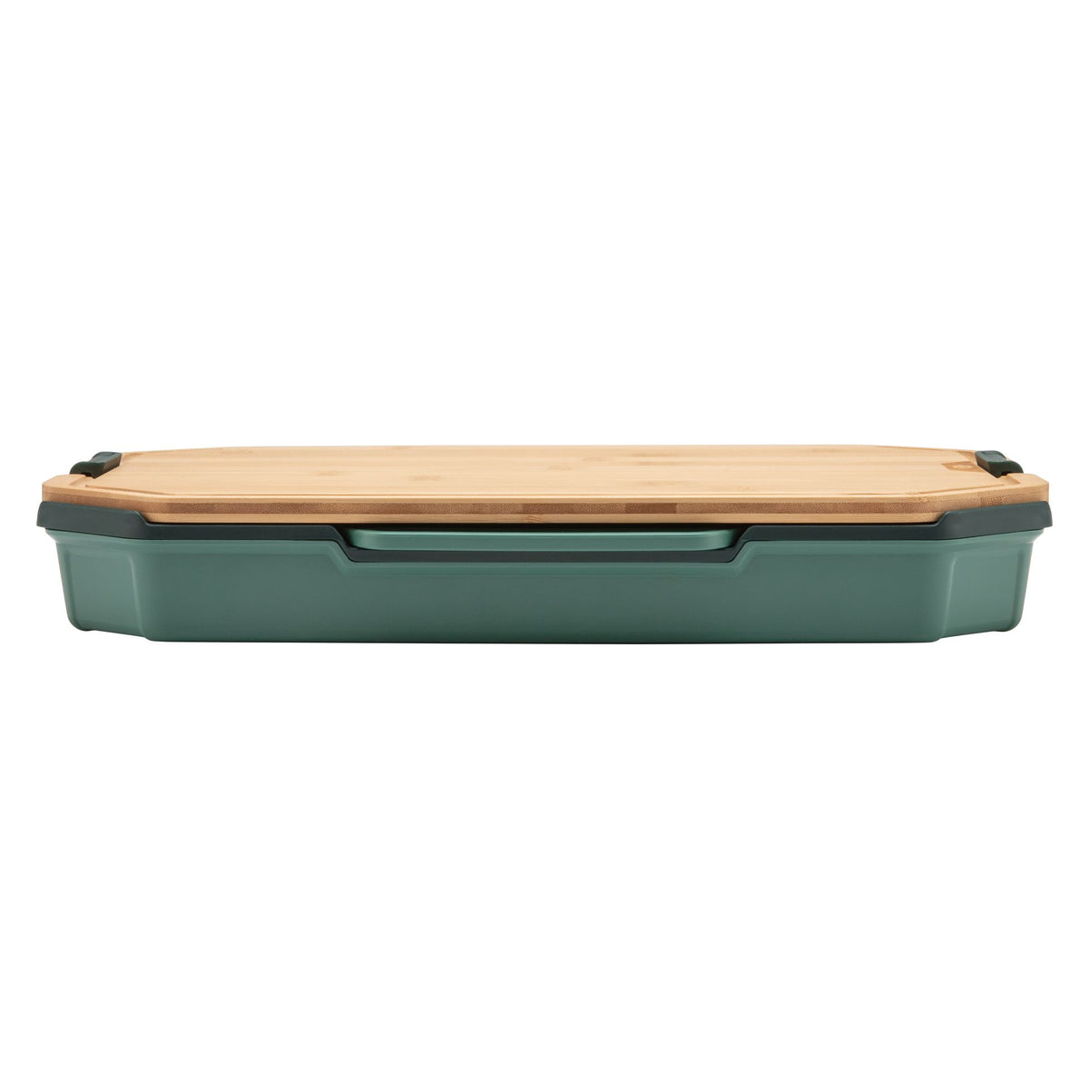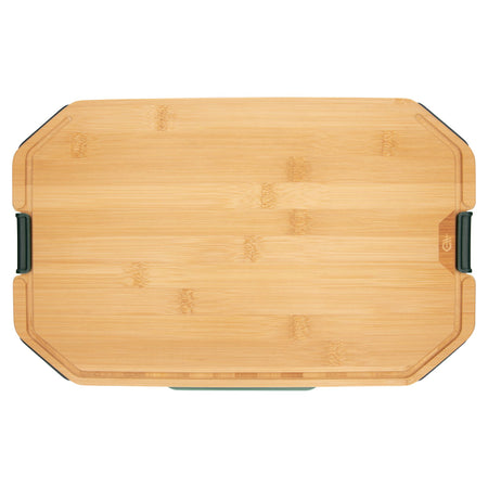 Robustes 6-teiliges Outdoor-Küchenset mit zwei hochwertigen Schneidbrettern (Bambus & Kunststoff) und zwei Messern aus rostfreiem Edelstahl. Inklusive stabiler Transportbox mit Verriegelung. Ideal für Camping, Trekking und mobiles Kochen.