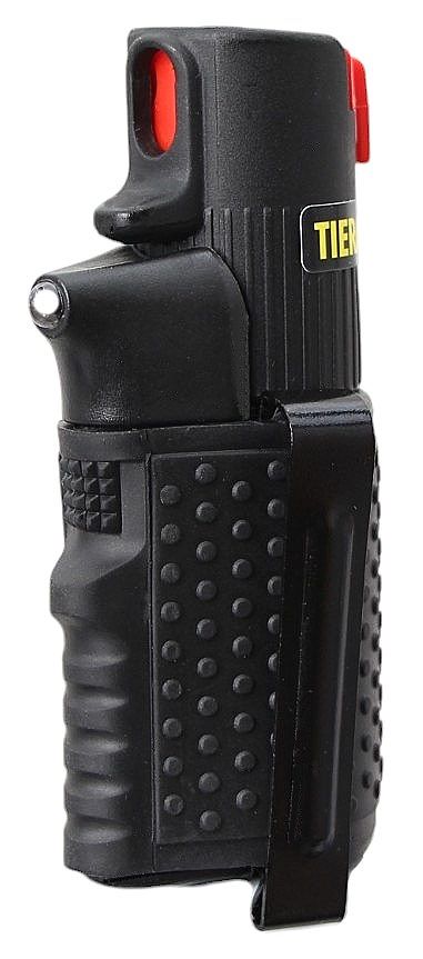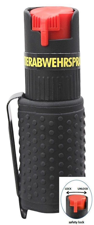 Kompaktes Direktstrahl-Pfefferspray mit integrierter LED-Lampe – ideal für den täglichen Einsatz. Es bietet präzises Zielen, ca. 3 m Reichweite und hohe Windstabilität. Der genoppte Gummigriff sorgt für sicheren Halt, die Schiebesicherung schützt vor unbeabsichtigtem Auslösen. Mit praktischem Clip zur Befestigung und LED-Lampe (inkl. 4 AG5-Knopfzellen). Passt in jede Hand- oder Jackentasche. Nur zur Tierabwehr zugelassen.
