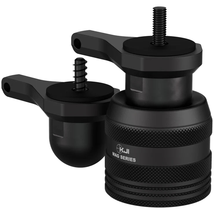 Die Befestigung der Mag-Serie an Ihrer Waffe ist ganz einfach. Das intuitive Design gewährleistet eine schnelle und problemlose Anbringung und Entfernung. Setzen Sie einfach die Stahlkugel der Halterung auf den Magnetadapter, um Ihr KJI Mag zu befestigen. Um Ihre Waffe zu entfernen, neigen Sie sie nach links oder rechts.