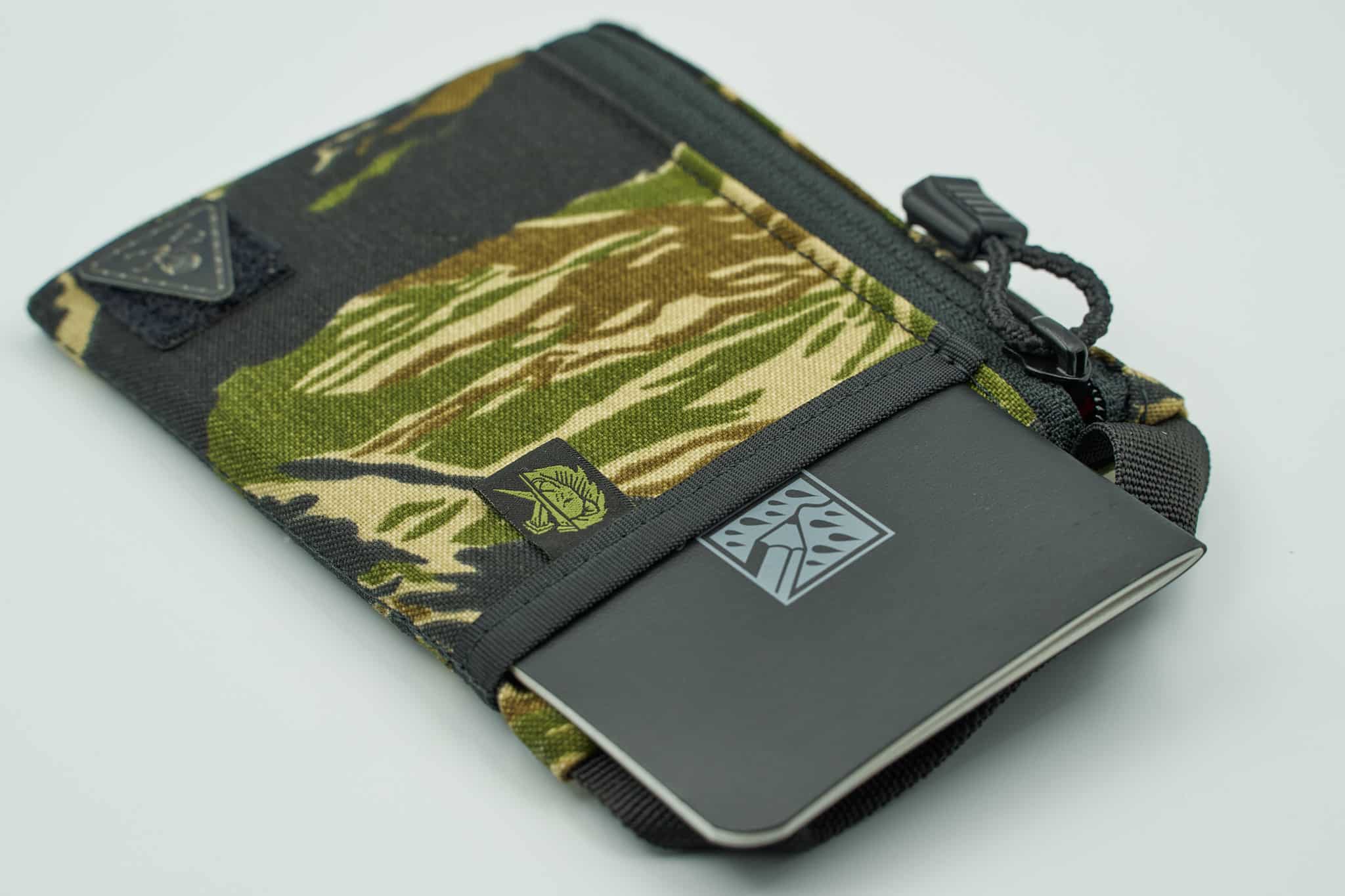 An der Front des XL M.U.P. V3.0 außen ist Platz für flach aufbauende Gegenstände wie kleine Notizblöcke mit einer Breite von 8.0 cm und einer Tiefe von 11.5 cm. Ausserdem unten Rechts eine 2.6 x 2.6 cm grosse Klettfläche für Rangereyes. Neu auf der Rückseite sind 2 EDC-Organize Fächer für Lampen und Folder, aber auch Multitools finden Platz. Abmessung hier je eine Breite von 5.0 cm und einer Tiefe von 11.4 cm. Die Gurtbandschlaufe, im oberen Bereich ermöglicht einen schnellen und sicheren Zugriff, ohne dabei zu sehr aufzutragen.