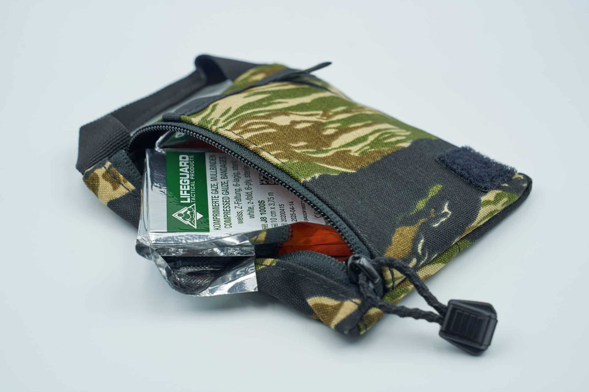 Eckig kommt er daher und nimmt allerlei EDC Ausrüstung auf, die sonst in der Jeans verloren gehen würden. Ob als kleines IFAK oder BooBoo Kit, als Tasche für Survival-Kram oder für das tägliche EDC, Platz ist im XL M.U.P. V3.0 allemal und er kommt in einer ähnlichen Ausstattung wie der kleine Bruder. Im Inneren ist der XL M.U.P. mit RipStop Nylon in Signalorange ausgekleidet und einer mit Laser bearbeiteten Sicherungsschlaufe.