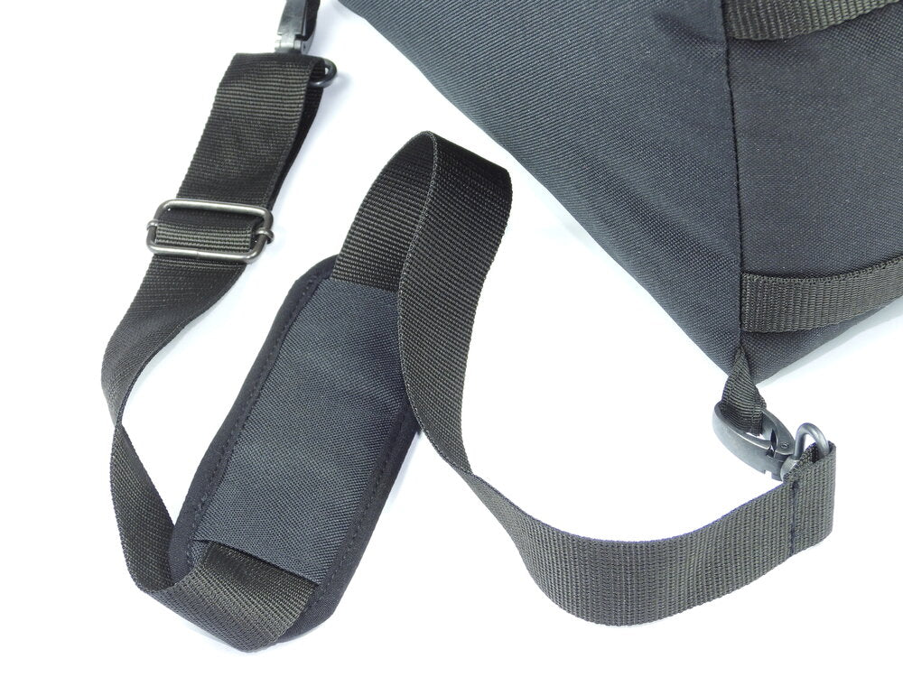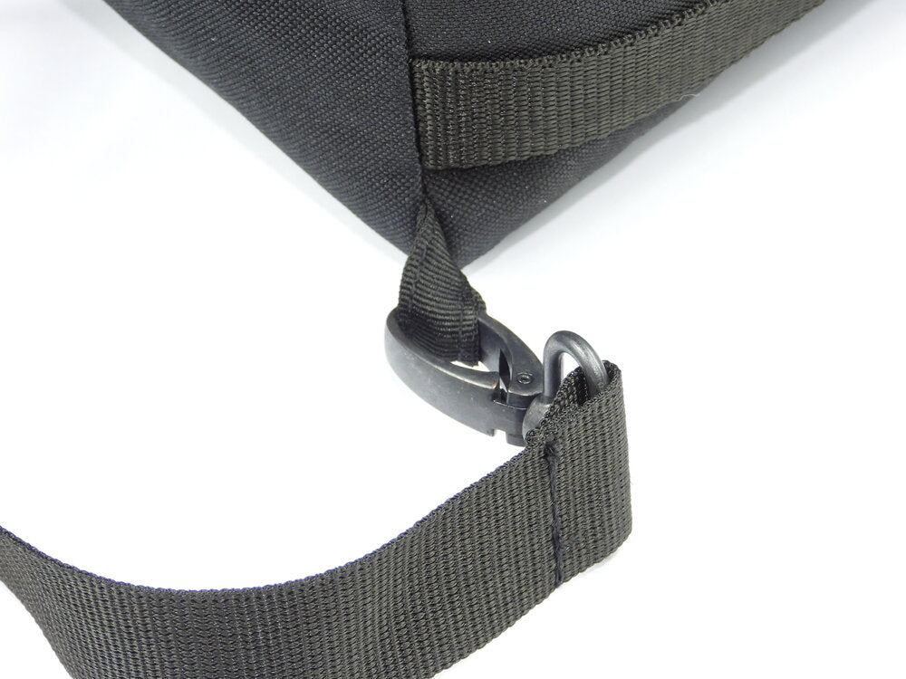 Dank der beiden verstärkten Gummibänder kann die Tasche an einer Gliedmaße oder an der Waffe befestigt werden. Außerdem verfügt sie über Griffe an beiden Seiten, um sie schnell und einfach zur Schussposition zu transportieren. Sie ist außerdem mit einem verstellbaren Gurt ausgestattet, der um den Körper festgezogen werden kann. An jeder Ecke befinden sich starke Textil-Aufhängestreifen. Mit ihnen kann der Suspensor so befestigt werden, dass je nach den Anforderungen der Position die beste Ergonomie erzielt wird.