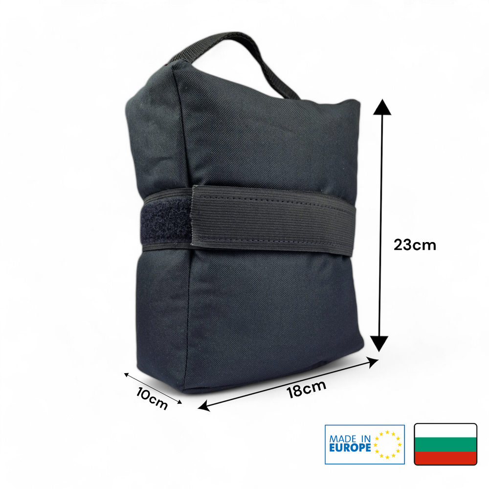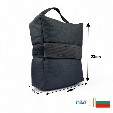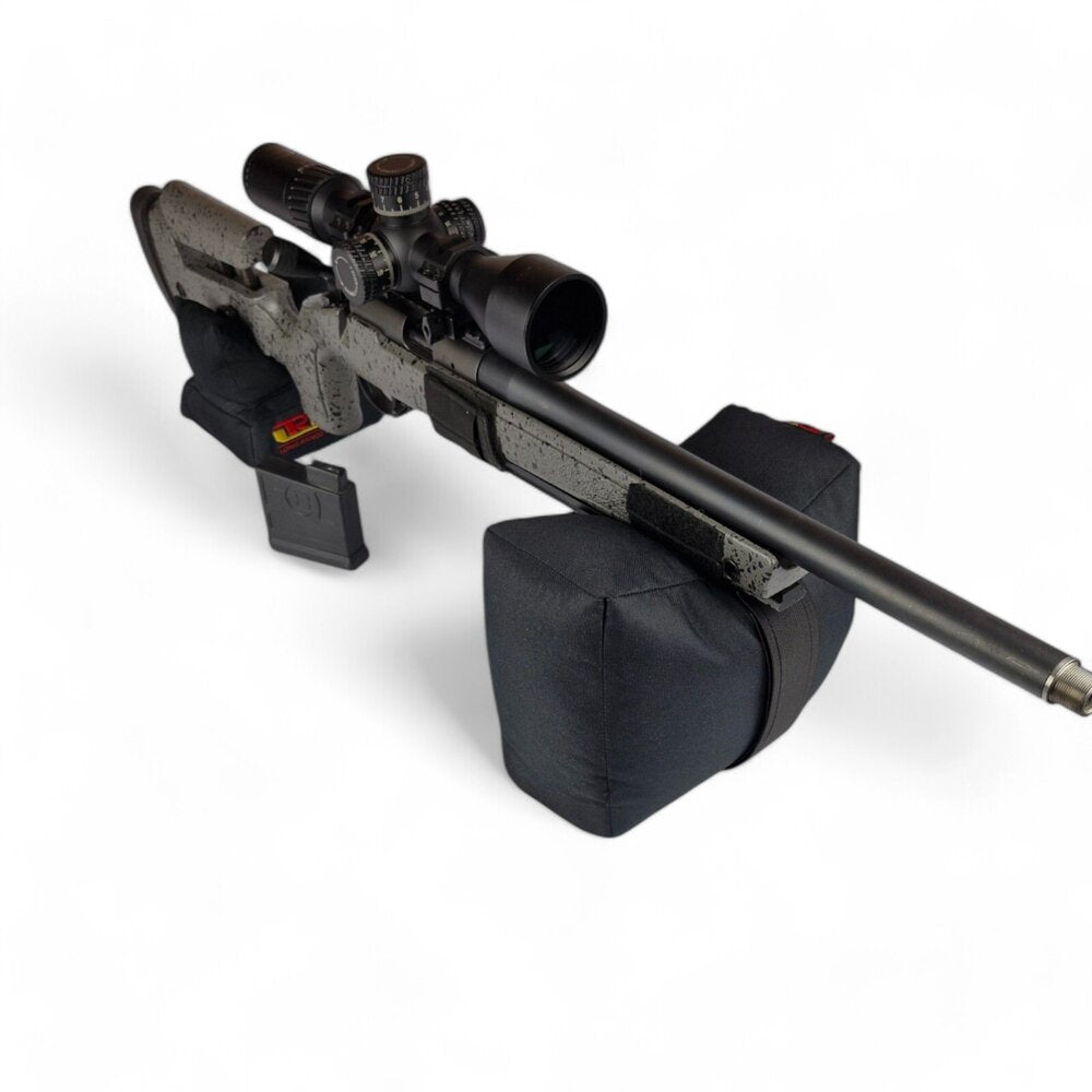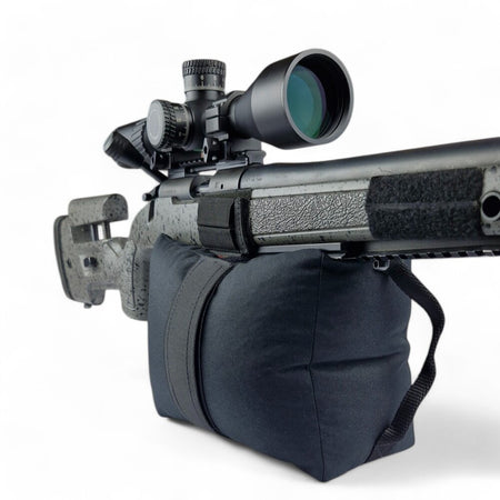 Der Zeroing Bag wurde mit dem Ziel entwickelt, das Schießen mit Waffen ohne Zweibein zu erleichtern. Die Tasche hat eine rechteckige Form mit den Maßen 18 x 23 cm, um die Größe des zusammengeklappten oder ausgefahrenen Harris-Zweibeins zu simulieren. Er kann auch in liegender Position verwendet werden, da die Füllung aus Kunststoffgranulat einen stabilen Halt bietet. Mit einem Griff an einem Ende für einfachen Transport.