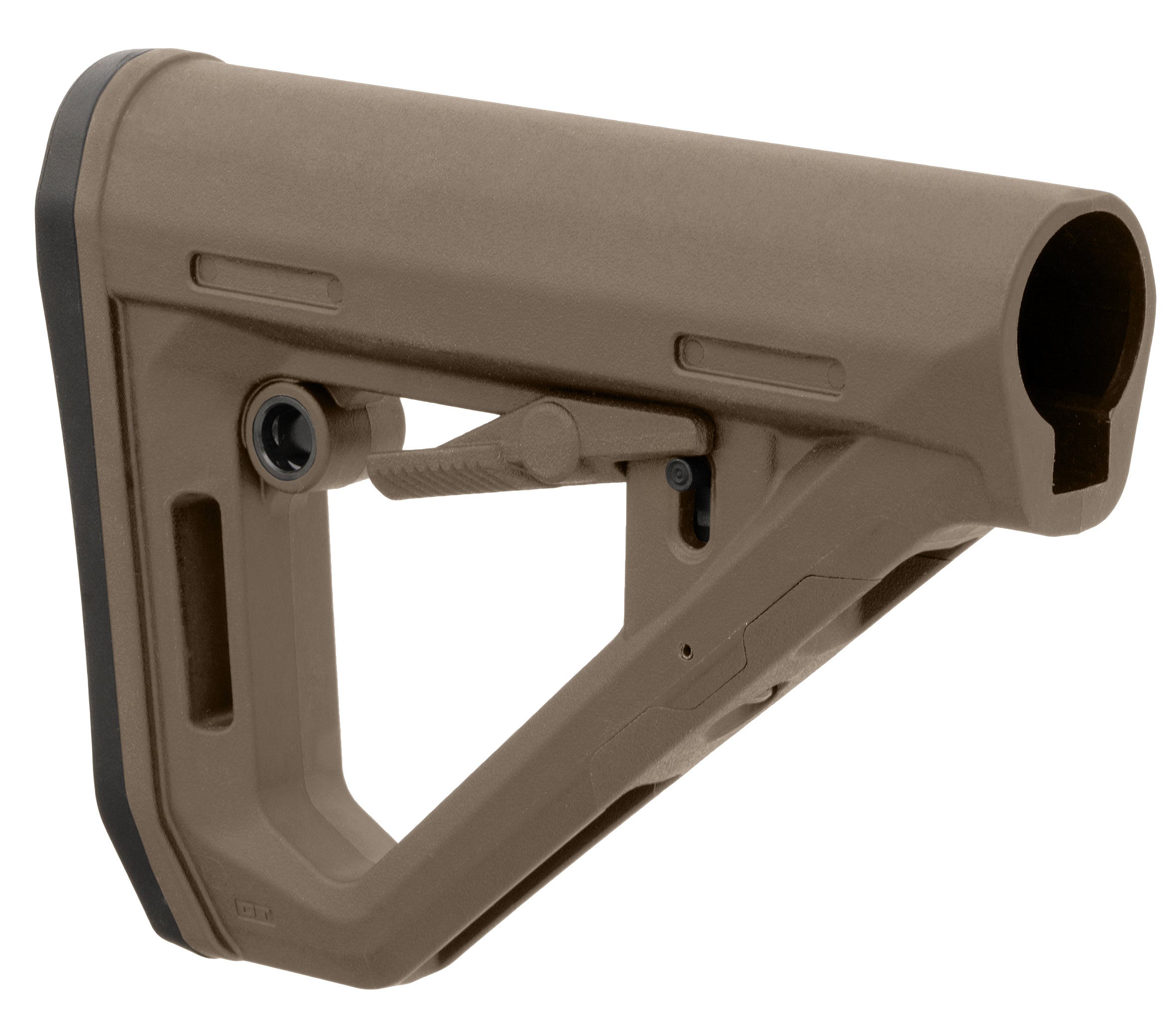 Der Magpul DT Stock Carbine ist ein Karabiner- Schaft im A-Frame-Stil mit automatisch einrastender Reibungsverriegelung, die beim Verstellen reflexartig und inaktiv ist. Dies erzeugt zusätzliche Spannung am Pufferrohr und sorgt für eine besonders feste Verriegelung, die die Bewegung zwischen dem Verriegelungsstift des Schafts und der Gehäuseverlängerung minimiert. Das Ergebnis ist eine erhöhte Haltbarkeit bei starken Stößen und eine schnelle, reibungslose und reibungslose Anpassung der Schaftlänge im laufenden Betrieb. Zu den weiteren Merkmalen des Magpul DT Stock Carbine gehören eine einzigartige, rutschfeste Schaftkappe, die dem Profil der SL-Linie entspricht und die optimierte Krümmung des CTR übernimmt, ein beidhändig bedienbarer Verstellhebel, eine rotationsbegrenzende QD-Riemenhalterung und eine 1,25-Zoll-Fußmannschlaufe.