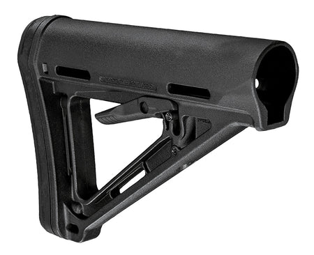 Der Magpul MOE Stock Mil-Spec (Magpul Original Equipment) ist ein Drop-In-Schubschaft für AR15/ M16 Modelle, mit Mil-Spec Buffer Tubes. Das stromlinienförmige A-Frame-Profil ist auf leichte und schnelle Aktion ausgelegt und verhindert ein Verhaken und schützt den Entriegelungshebel, um ein versehentliches Aktivieren zu verhindern.