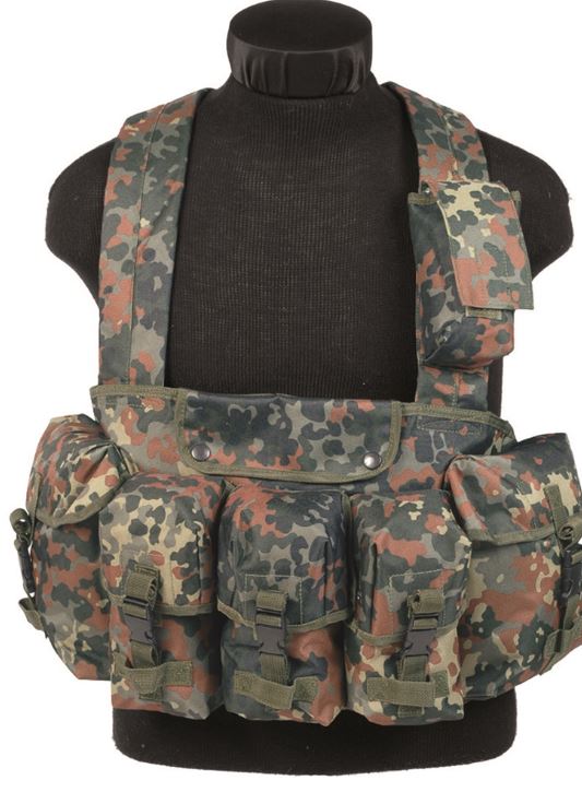 - 3 Magazintaschen und 2 Mehrzwecktaschen mit Schnellverschluss, Klettverschluss mit Geräuschunterdrückung und Ablauföse