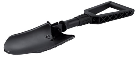 Der US Dreifachspaten Gen.2 hat eine eine geriffelte und eine glatte Spatenblattseite. Das Spatenblatt lässt sich durch einen Drehverschluss feststellen.