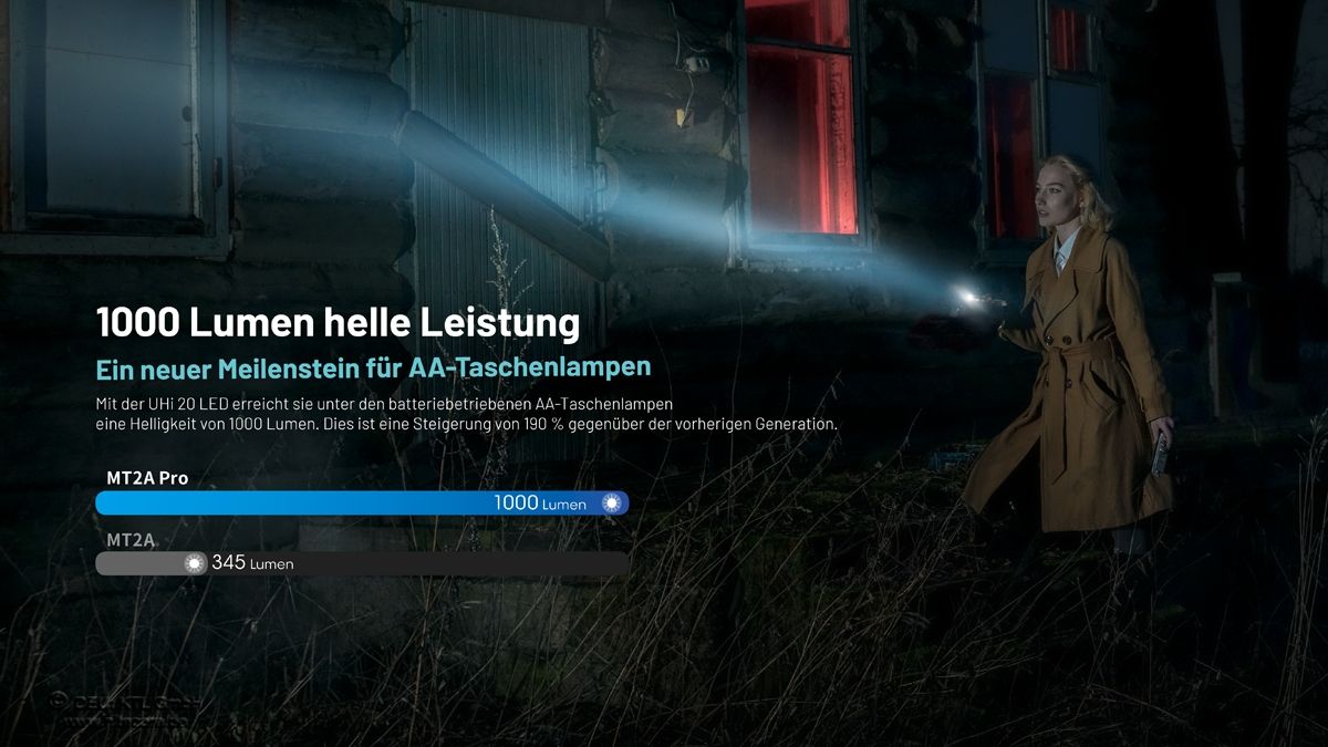 Leistungsstarke und vielseitige Taschenlampe im schlanken 2×AA-Format – ideal für Outdoor, Alltag und Notfallausrüstung. Die MT2A Pro überzeugt durch hohe Helligkeit, robuste Bauweise und einfache Bedienung.