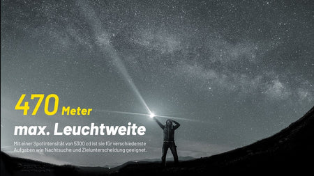 Die Nitecore P23i ist eine kompromisslose taktische Taschenlampe, entwickelt für professionelle Anwender in Polizei, Sicherheit, Jagd und Outdoor. Mit ihrem leistungsstarken LUMINUS SFT-70 LED-Chip liefert sie eine beeindruckende Maximalleistung von bis zu 3.000 Lumen und eine Reichweite von über 450 Metern – perfekt für großflächige Ausleuchtung ebenso wie für punktgenaue Distanzaufklärung.