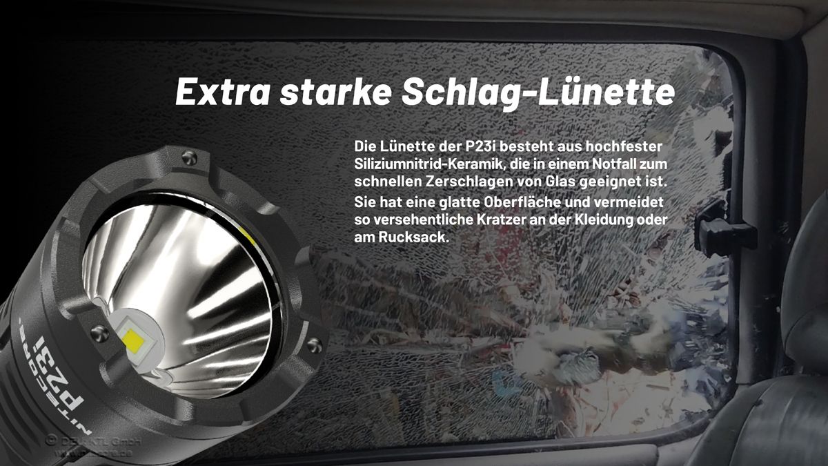 Das intelligente UI ermöglicht direkten Zugriff auf Strobe-Ready und Turbo-Modus über den hinteren Doppelschalter, während das robuste, hartanodisierte Aluminiumgehäuse selbst härteste Bedingungen problemlos wegsteckt. Die P23i ist vollständig USB-C-ladbar und wird mit dem leistungsstarken NL2150HPi 5000 mAh Akku betrieben.