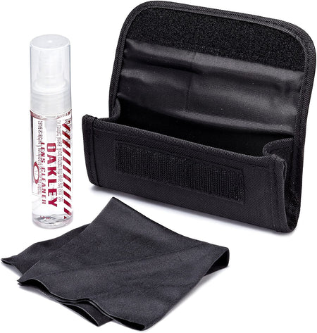 Oakley Sonnenbrillen-Brillenputzset. Für alle Sonnenbrillen geeignet. Schützen Sie Ihre Gläser und genießen Sie das ganze Jahr lang klare Sicht. Die spezielle Putzlösung sorgt für höchste Klarheit, ohne die optische Präzision von Oakleys Gläserbeschichtungen zu beeinträchtigen. Die präzise Pumpe liefert die perfekte Dosierung pro Glas. Brillenputztuch mit HDO-Logo für streifenfreie Reinigung. Schützendes Nylon-Etui.