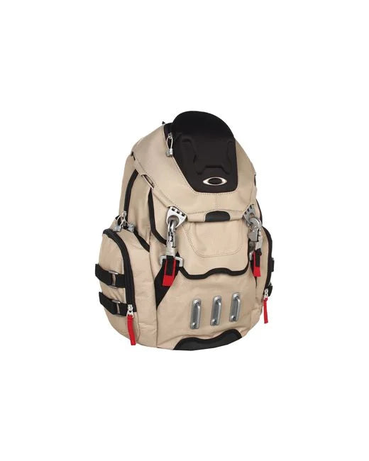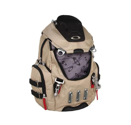 Der Kitchen Sink Rucksack von Oakley trägt seinen Namen zu Recht, denn er hat von allem ein bisschen! Der Kitchen Sink ist ein großformatiger Rucksack mit Deckelöffnung, einem einteiligen Hauptfach, einem gepolsterten Computerfach mit seitlichem Eingriff, zwei Seitentaschen und einem Organizerfach auf der Vorderseite. An den Schultergurten befinden sich zwei Holster für mobile Elektronik, und der Hüftgurt ist abnehmbar und hat zusätzliche Taschen. Ein kompressionsgeformtes Rückenteil, gepolsterte Schultergurte und ein gummierter Boden mit Schuhfach runden das Paket ab.
