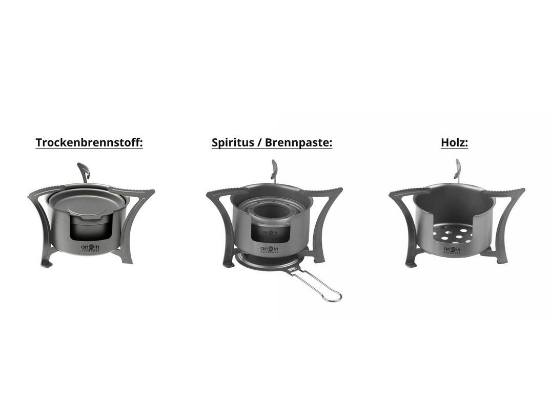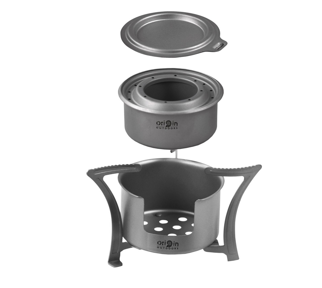 Der sehr leichte Titan Combo Kocher kann mit Spiritus, Brennpaste und mit festen Brennstoffen, wie Trockenbrennstoff oder Holz verwendet werden. Mit Entnahme des Spirituseinsatz, kann der Kocher zum Beispiel mit Holz oder einer Brennpastendose befüllt werden. Der Deckel kann den Spirituskocher im Handumdrehen in einem Trockenbrennstoffkocher umfunktionieren. Bei Bedarf kann der Griff des Deckels auch entfernt werden. Mit dem Origin Outdoors Titan 'Camping Topf' (Artikel 562105) kann der Kocher ideal kombiniert werden. Der robuste und kompakte Kocher ist vielseitig verwendbar und ideal für echte Outdoorler.
