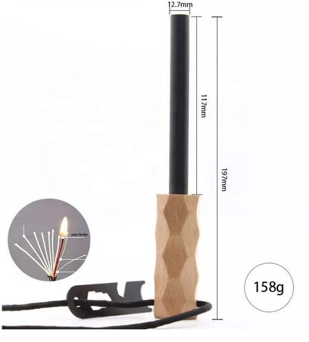 Der Zündstahl liegt mit seinem kantigen Griff gut in der Hand. Ausgestattet mit einem Multitool (5-Funktionen) Schaber, Paracord mit Anzündschnur und Notfallpfeife. Der Zündstahl ist langlebig und wasserfest. Ermöglicht schnelle und viele Zündungen bei Wind und Wetter. Der ideale Begleiter für jede Survivalausrüstung, Camping- oder Trekkingtour.