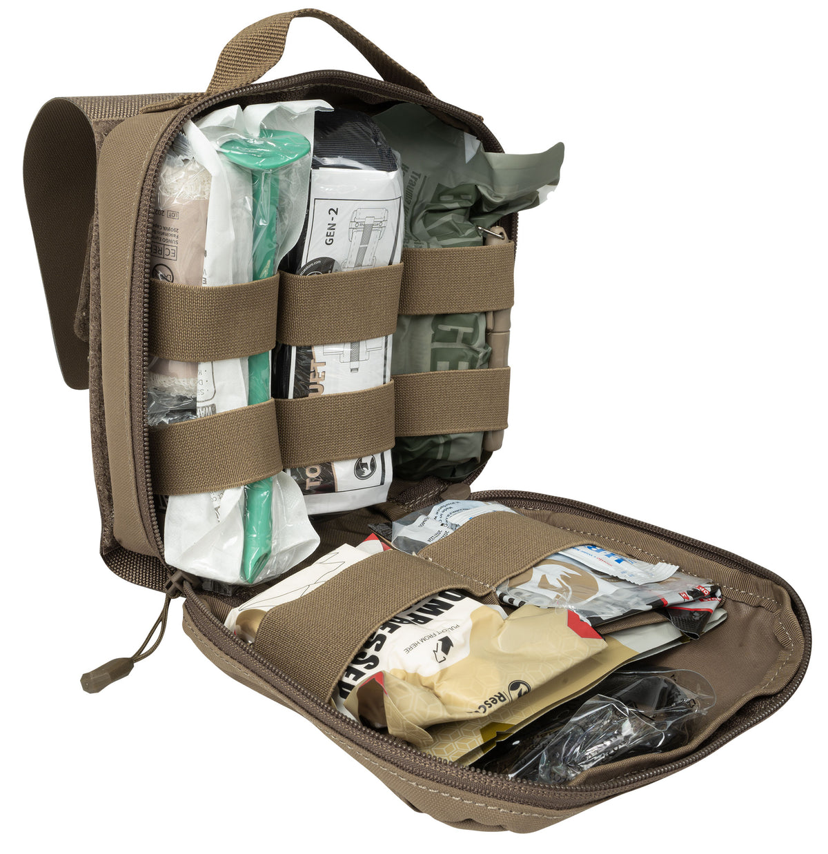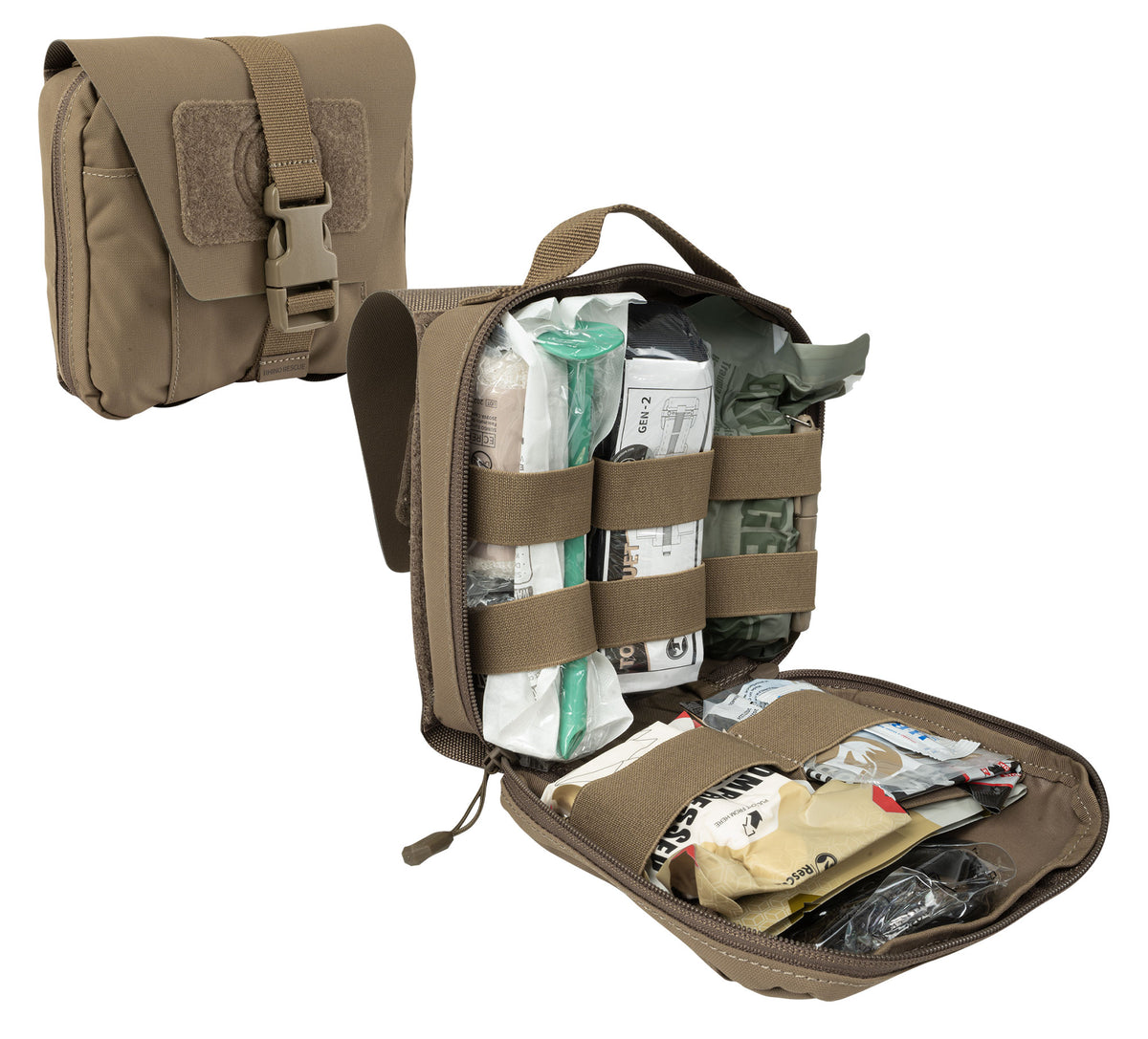 Die zweiteilige Tasche besteht aus hochwertigem Cordura®-Material und ist mit Duraflex®-Schnallen ausgestattet. Dank Klett- und Flauschfläche kann das herausnehmbare Panel mit einem Handgriff von der Trägerplattform gelöst und direkt eingesetzt werden – ideal für stressige Notfallsituationen.