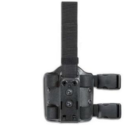 Beinplattform mit doppeltem Gurt, die mit zwei 50 mm elastischen Beingurten und einem vertikalen 50 mm Gurt zur Befestigung am Gürtel ausgestattet ist. Sie ist aus spritzgegossenem Nylon hergestellt, um Haltbarkeit und Flexibilität zu gewährleisten. Sie verfügt über Befestigungslöcher zur Befestigung von drei Safariland® taktischen Zubehörteilen oder einem Holster mit zwei Zubehörteilen. Der elastische Gurt verfügt über zwei Silikongurte für rutschfesten Halt.