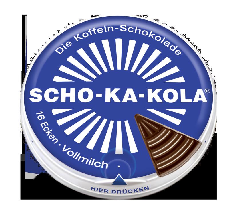 Seit Generationen begeistert SCHO-KA-KOLA in der markanten runden Dose mit dem auffälligen Strahlendesign. Darin enthalten sind 16 zartschmelzende SCHO-KA-KOLA-Ecken, erhältlich in der klassischen Zartbitter-Variante oder mit Vollmilchgeschmack. Ob herb oder süß: beide Sorten zeichnen sich durch die einzigartige Rezeptur mit dem natürlichen Koffein aus Kakao, Kolanuss und Kaffee aus. Durch die Kolanuss wird SCHO-KA-KOLA zu einer besonderen Koffein-Schokolade. Die Kolanuss ist der Samen des Kolabaumes, der hauptsächlich in West- und Zentralafrika zu finden ist und enthält deutlich mehr Koffein als herkömmlicher Kaffee.