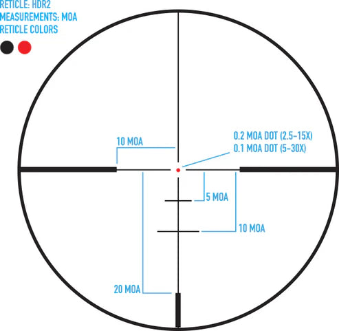 Das weiterentwickelte HDR2-Absehen sorgt für eine sehr klare und strukturierte Zielaufnahme. Die feinen Haltepunkte unterstützen zuverlässiges Halten bei Entfernung und Wind, während die beleuchtete Absehenbeleuchtung in mehreren Stufen für optimale Sichtbarkeit bei allen Lichtverhältnissen sorgt – sei es in grellem Sonnenlicht oder in der Dämmerung.