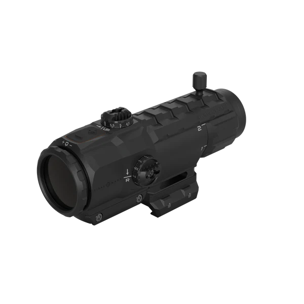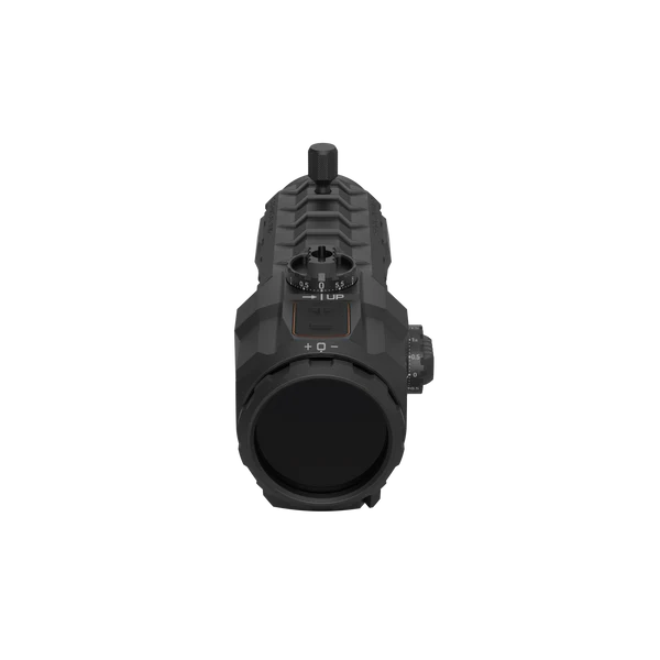 Das robuste Gehäuse aus 6061-T6 Aluminium ist stoßfest sowie staub- und wasserdicht (IP67) und für den anspruchsvollen Einsatz konzipiert. Das beleuchtete CRF-4-MIL-Absehen in der zweiten Bildebene bietet mehrere Helligkeitsstufen für unterschiedliche Lichtverhältnisse. Niedrigprofil-Türme ermöglichen präzise Höhen- und Seitenverstellung, während die kompakte Bauform ein geringes Gewicht und schnelle Handhabung gewährleistet.