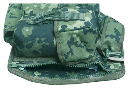 | - 2 Mehrzwecktaschen mit Kopressionsriemen, YKK-Schnellverschluss mit Klettverschluss zur Geräuschtarnung für zusätzliche Kampfmittel ect. | |