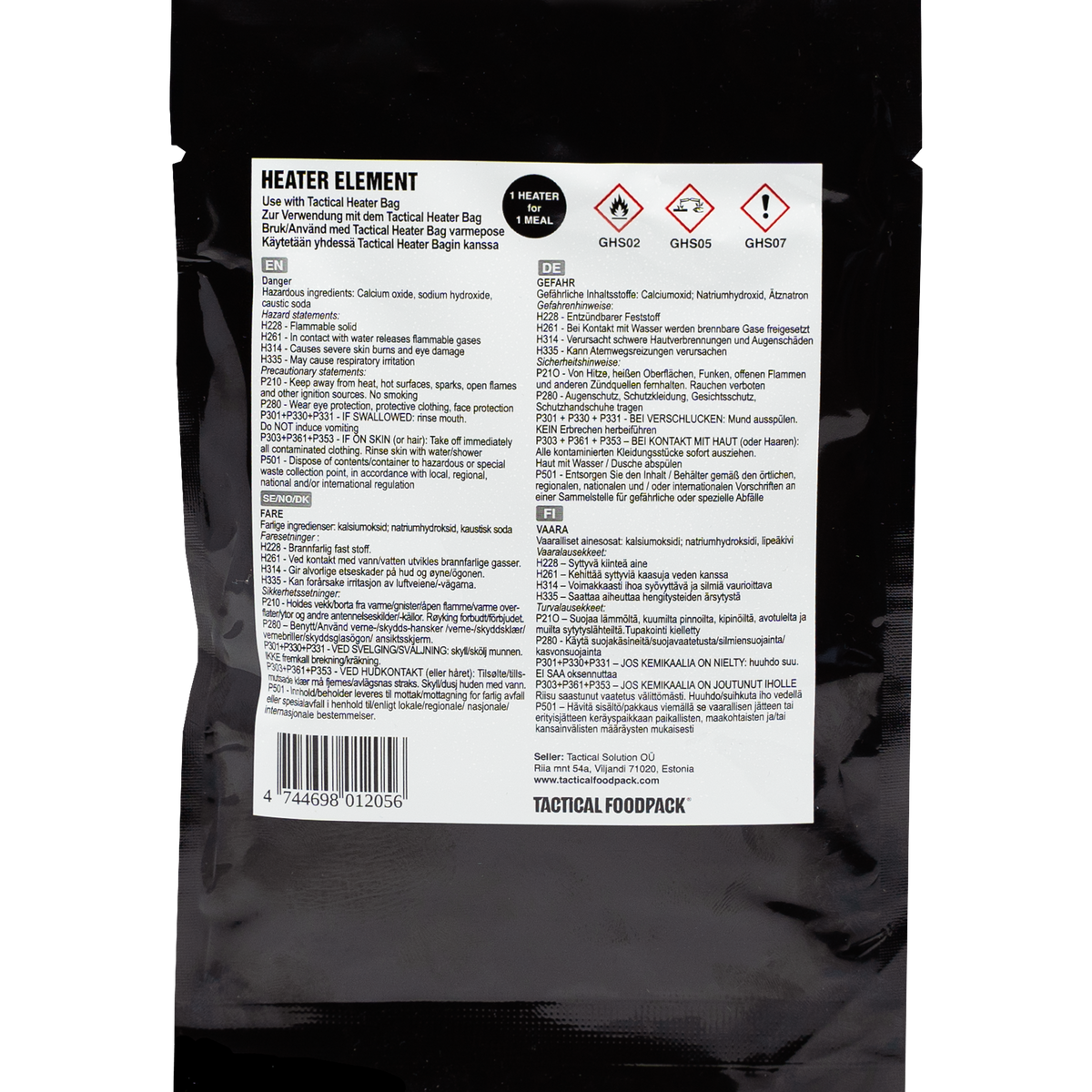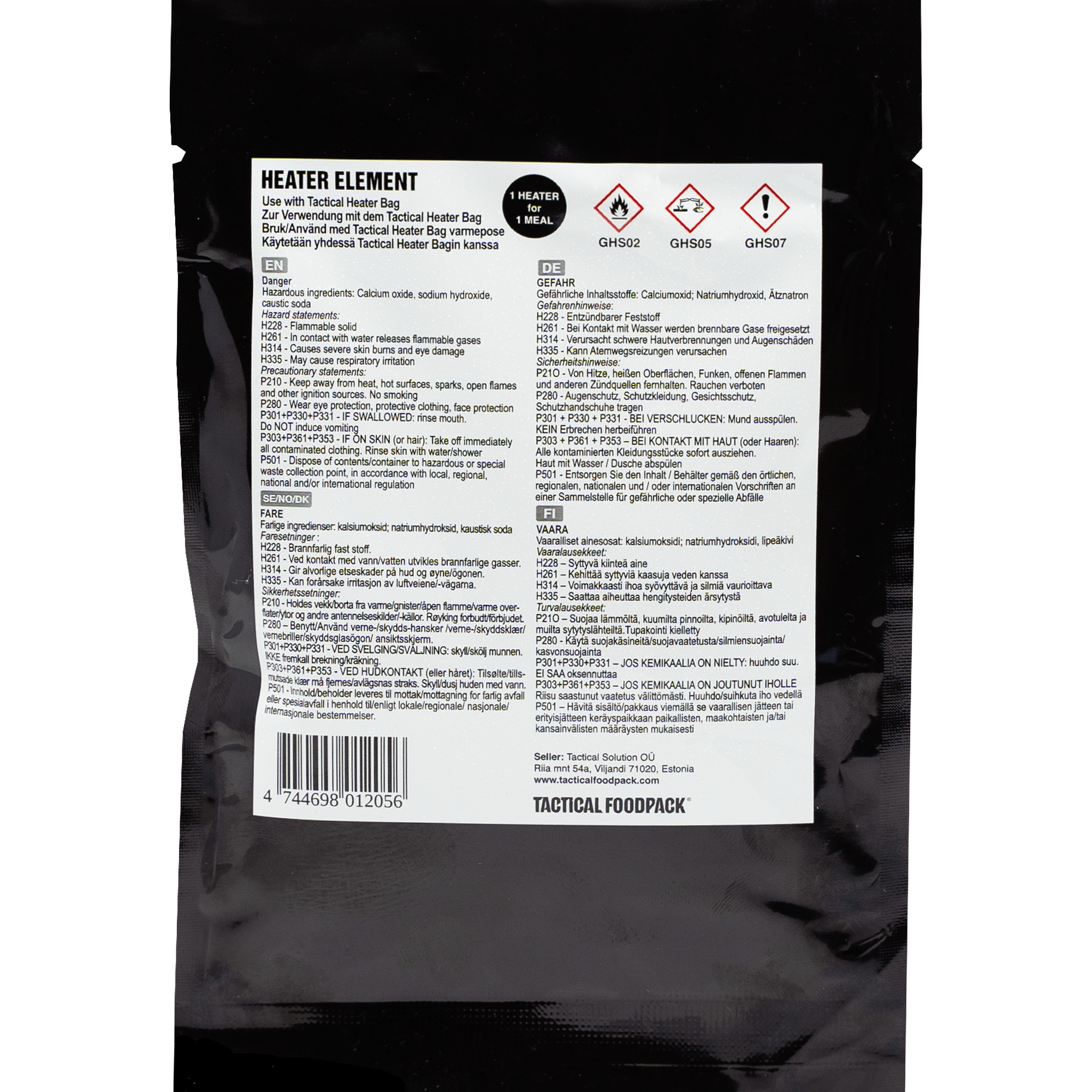 Hinweis: Das Heizelement ist nicht wiederverwendbar! Sie können es nur einmal aktivieren. Der Heater Bag ist jedoch mehrmals verwendbar.