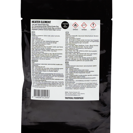 - Lassen Sie das Tactical Foodpack 15-20 Minuten in dem Heater Bag, wir empfehlen die Speisen nach 10 Minuten einmal umzurühren.