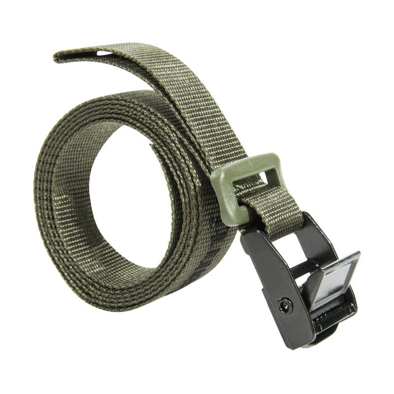 Packriemen zur Volumenminimierung (1m x 18mm). Damit lässt sich Gepäck komprimieren und Volumen einsparen. Oder man benutzt die Riemen, um Gepäck außen am Rucksack zu befestigen.