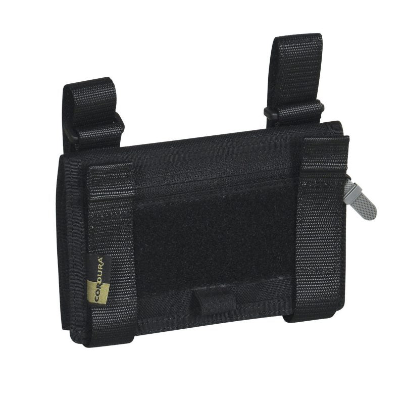 Aufklappbare Unterarmtasche mit Klarsichtfächern.