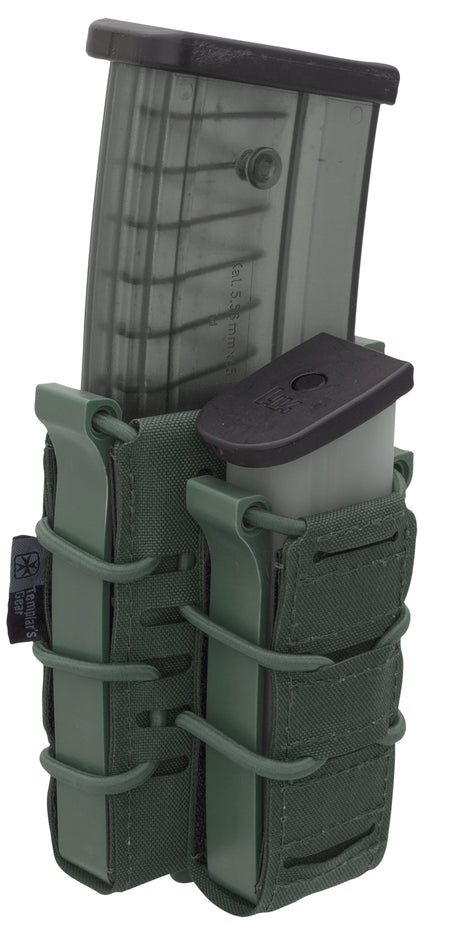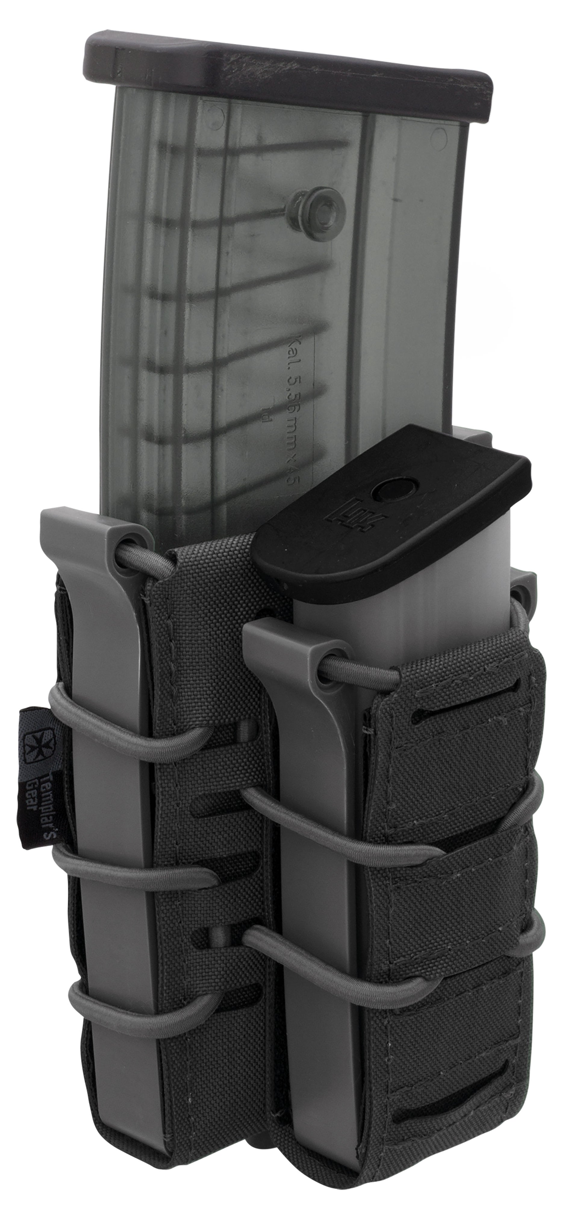Die modulare Magazintasche von Templars Gear bietet Platz für ein Gewehr- und ein Pistolenmagazin. Dank elastischer Halterung und offener Bauweise ermöglicht sie schnellen Zugriff bei gleichzeitig sicherem Sitz. Hergestellt aus robustem Cordura®-Material – leicht, widerstandsfähig und MOLLE-kompatibel. Ideal für den professionellen Einsatz und dynamisches Schießen.