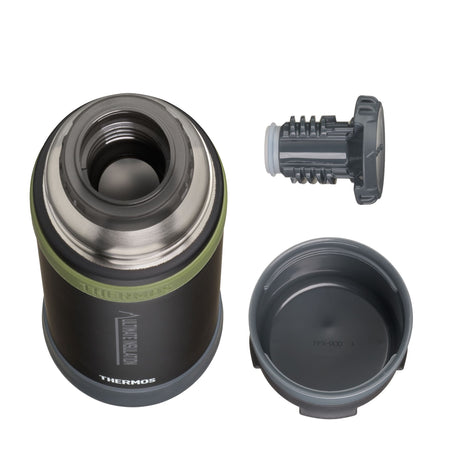 Mit dem Thermos Original bleibt das Lieblingsgetränk auch unterwegs den ganzen Tag bis zu 24 Stunden heiß oder kalt. Das garantiert die Verwendung von hochwertigem, schlag- und bruchfestem 18/8 Edelstahl. Die Isolierung der Thermoskanne gibt die Temperatur nicht nach außen ab, so lässt sich das Gefäß sicher von außen anfassen. Der Verzicht auf eine Innenbeschichtung und BPA garantiert unverfälschten Geschmack. Der Verschluss ist zweiteilig gehalten, um z. B. Zucker oder Honig hygienisch zu entfernen. Dank praktischem Drehverschluss mit Trinkbecher kann die Thermosflasche auch sicher in Tasche oder Rucksack verstaut werden. Durch die rutschfeste Struktur am Deckel lässt sich die Flasche auch einfach mit Handschuhen öffnen. Alle Teile sind spülmaschinengeeignet.