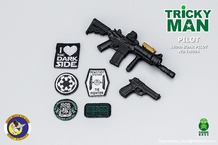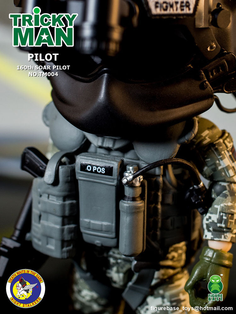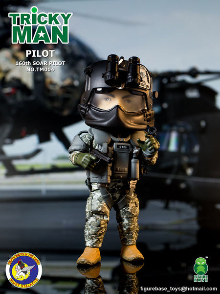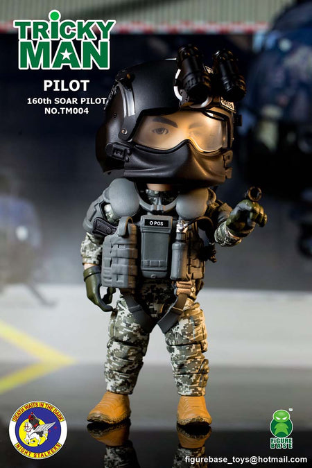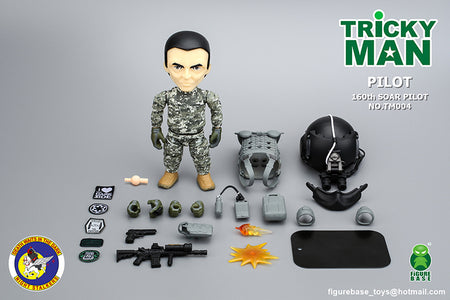 Der Trickyman TM001 Seal Team 6 Squad Leader von FigureBase ist eine 12,5 cm große, hoch stilisierte, super artikulierte Militärfigur. Der Pilot wird mit Zubehör einschließlich Waffen und austauschbaren Teilen einschließlich geliefert.